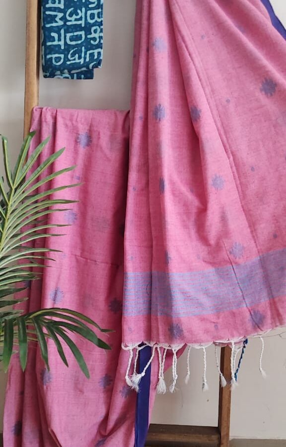 Candyfloss Pink Handloom Cotton Saree With Jamdani Motifs.
