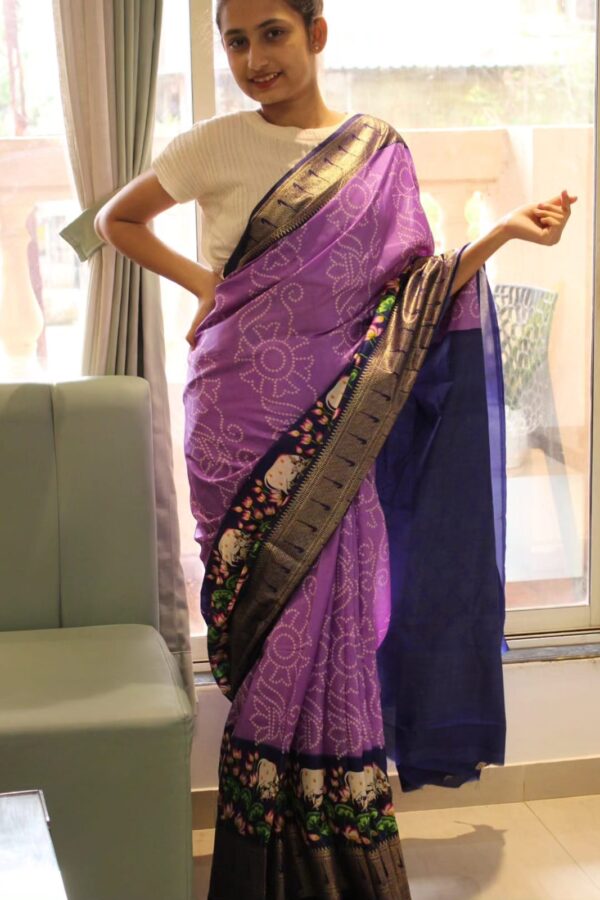 Purple Digital Bandhani Pichwai Foil Print Saree With Blouse