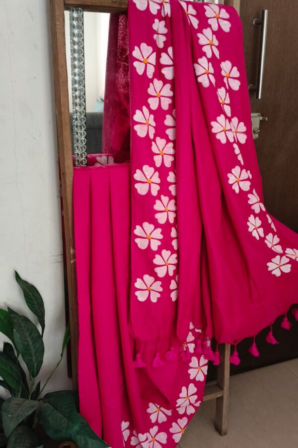 Burgundy Chumki Mulmul Saree With Additional Blouse Fabric