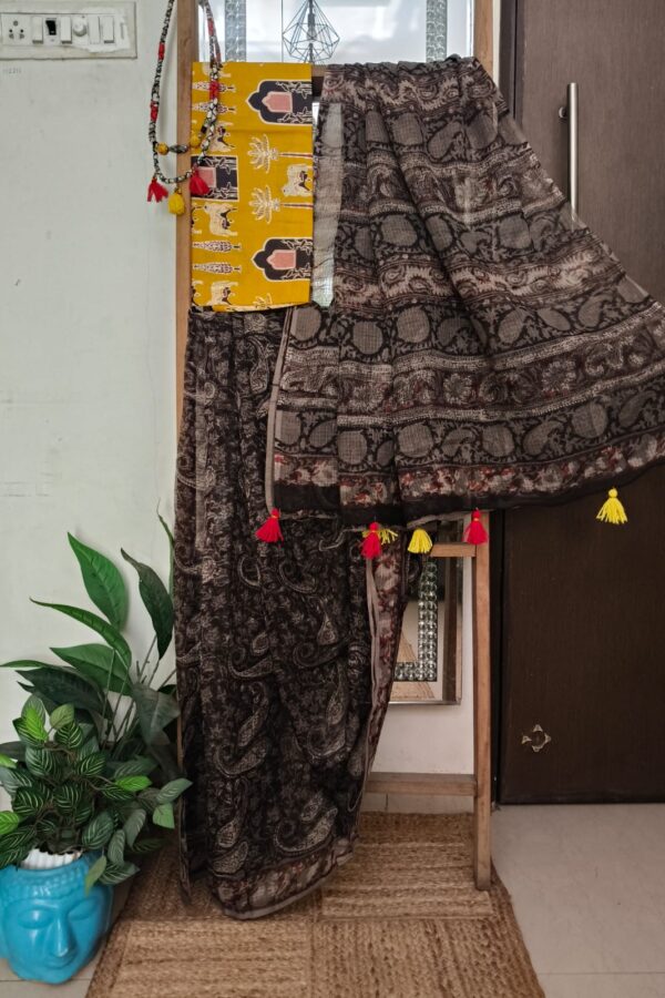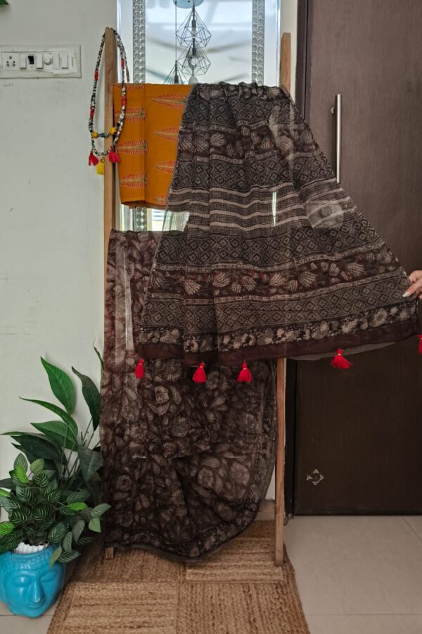 Red & Black Shade Handblock Printed Kota Doriya Saree