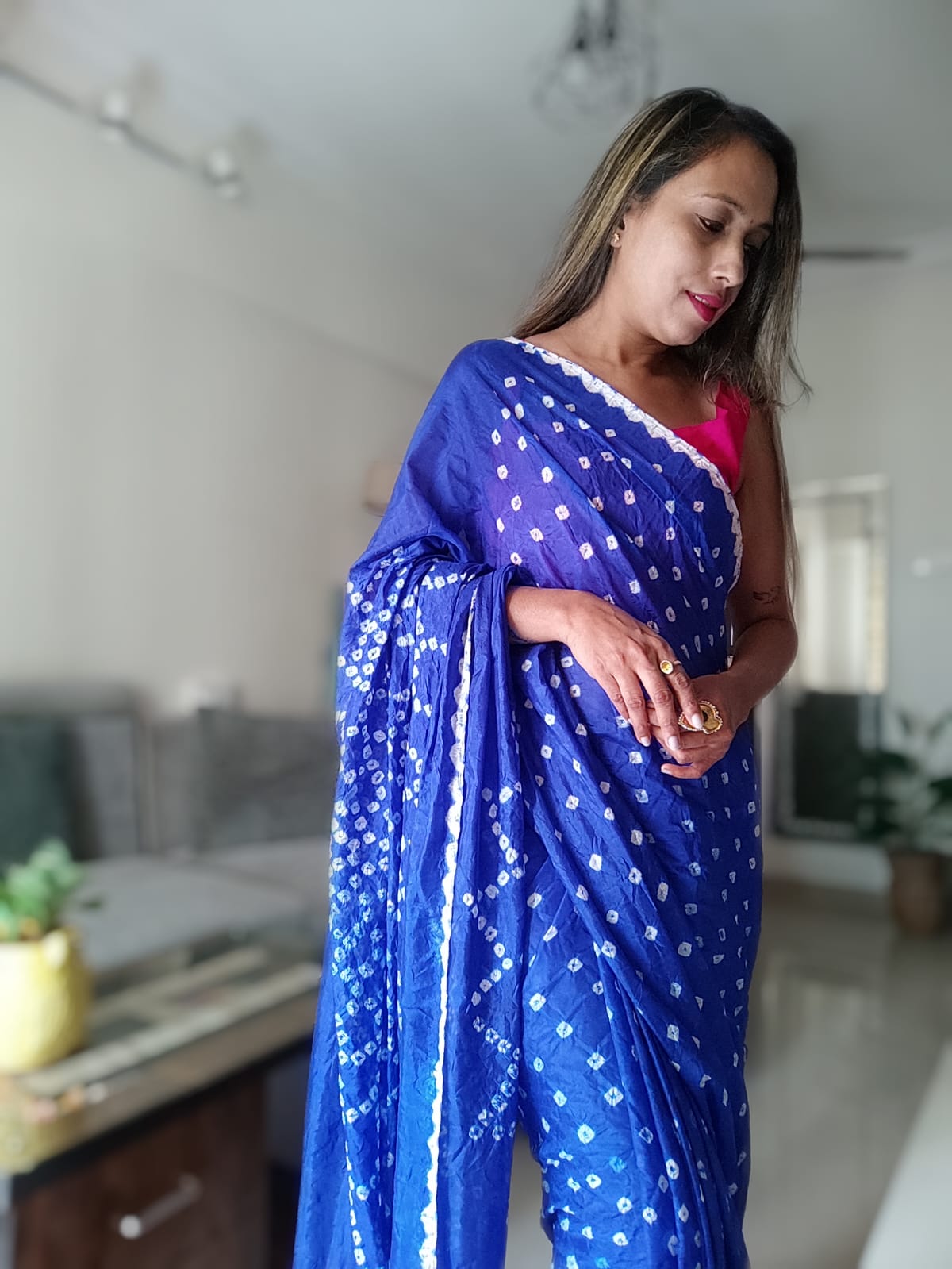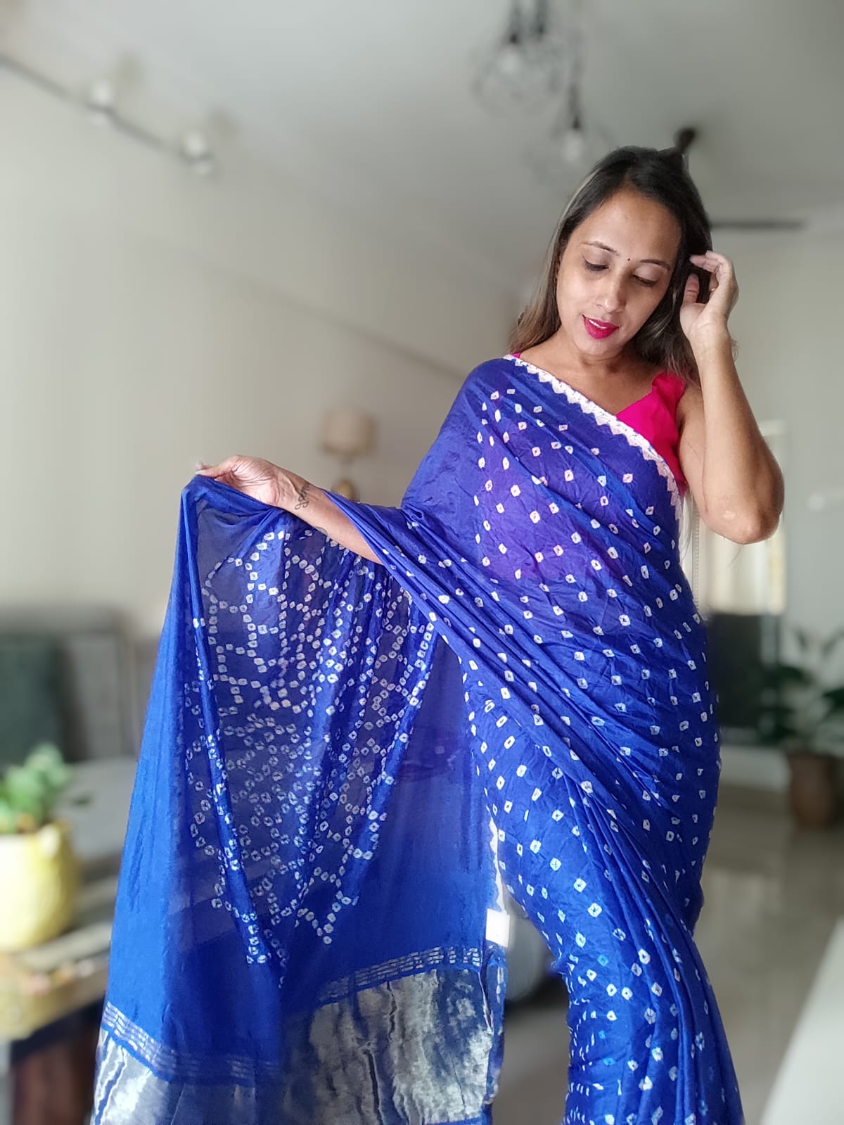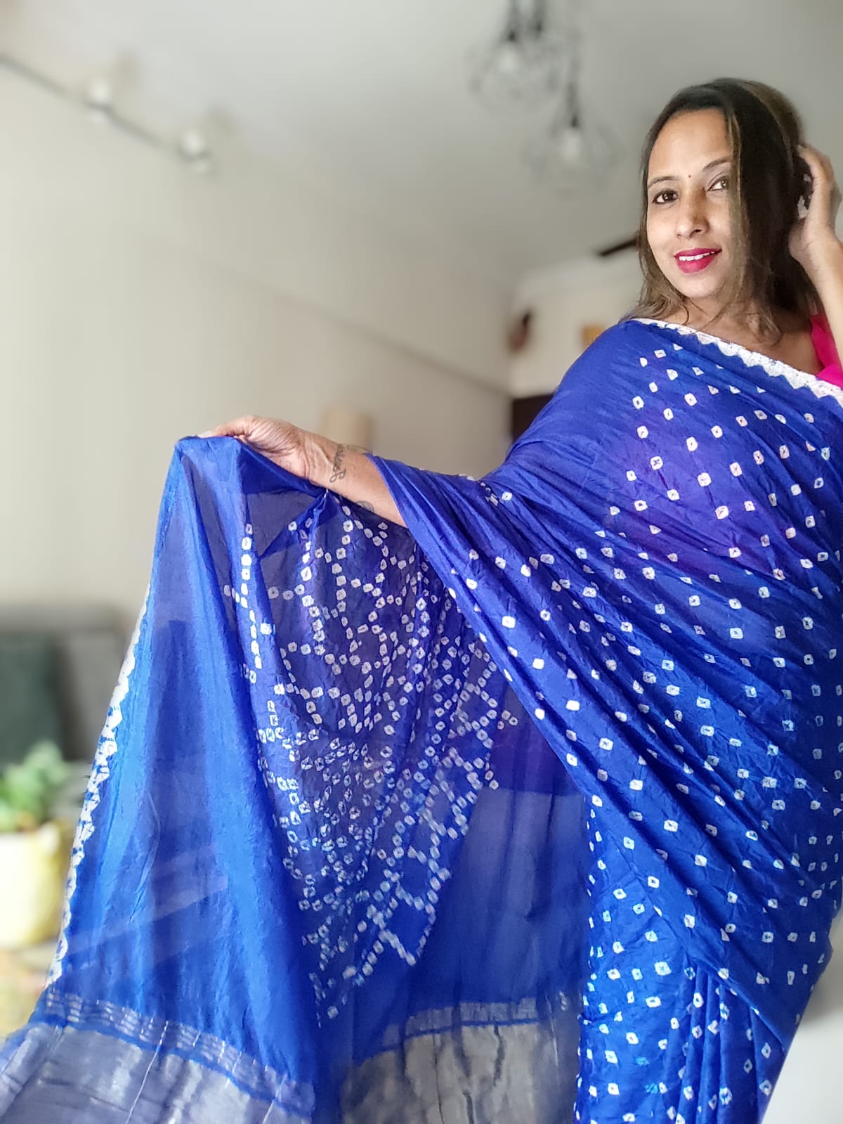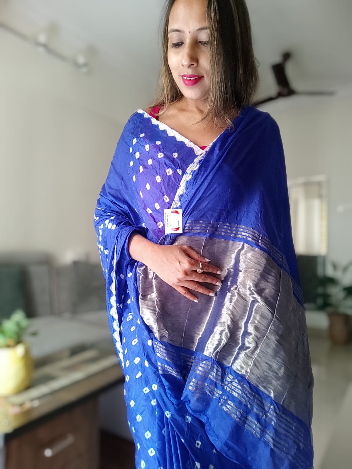 A Royal Blue Warm silk tie and dye Bandhani Lagdi Patta Pallu Saree.