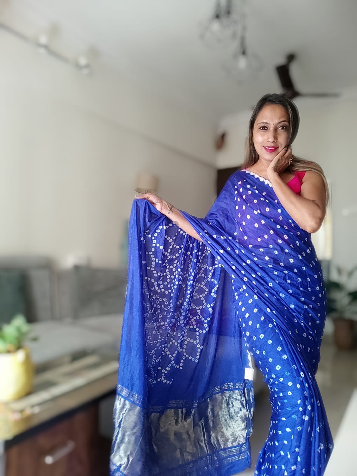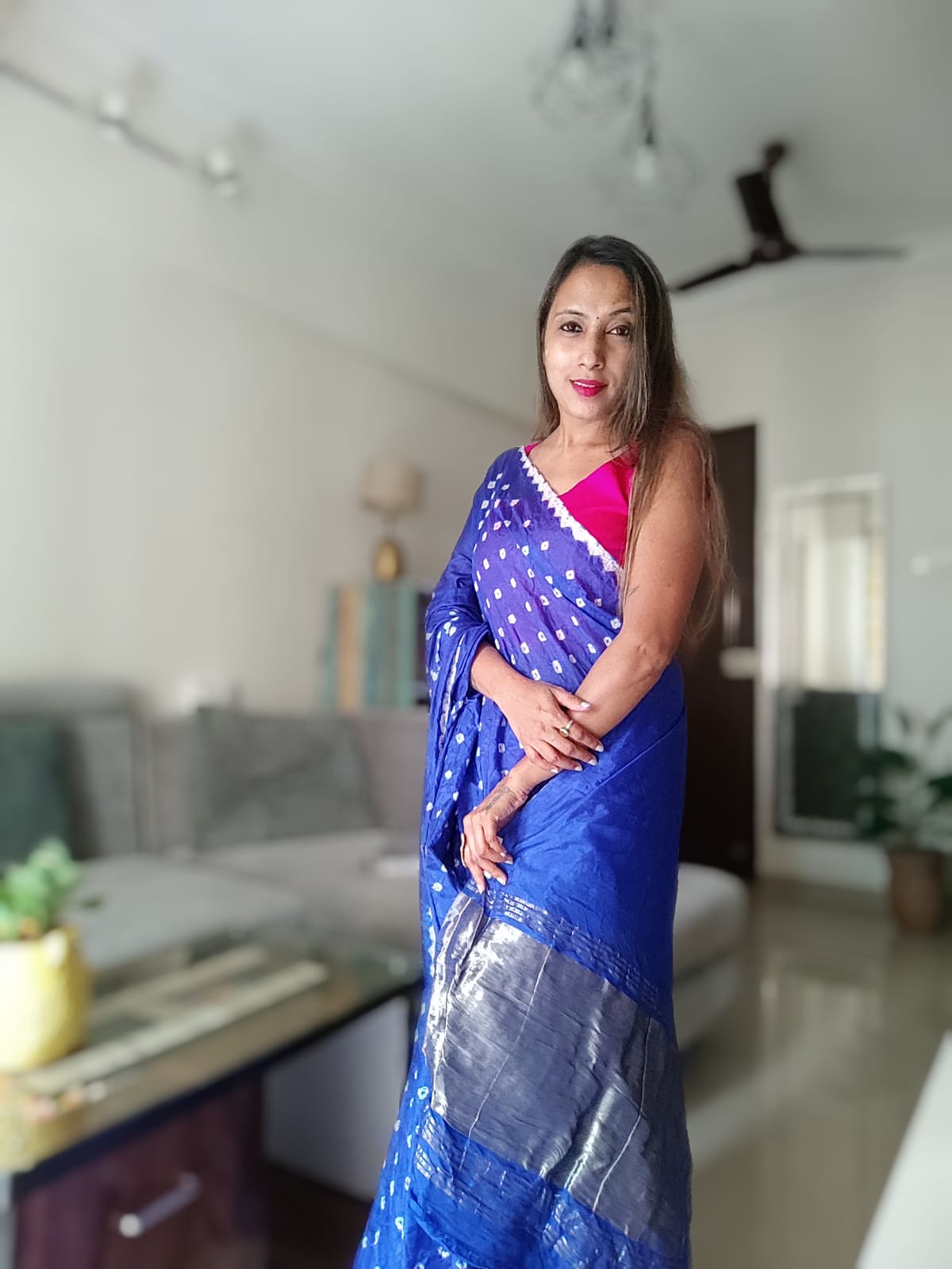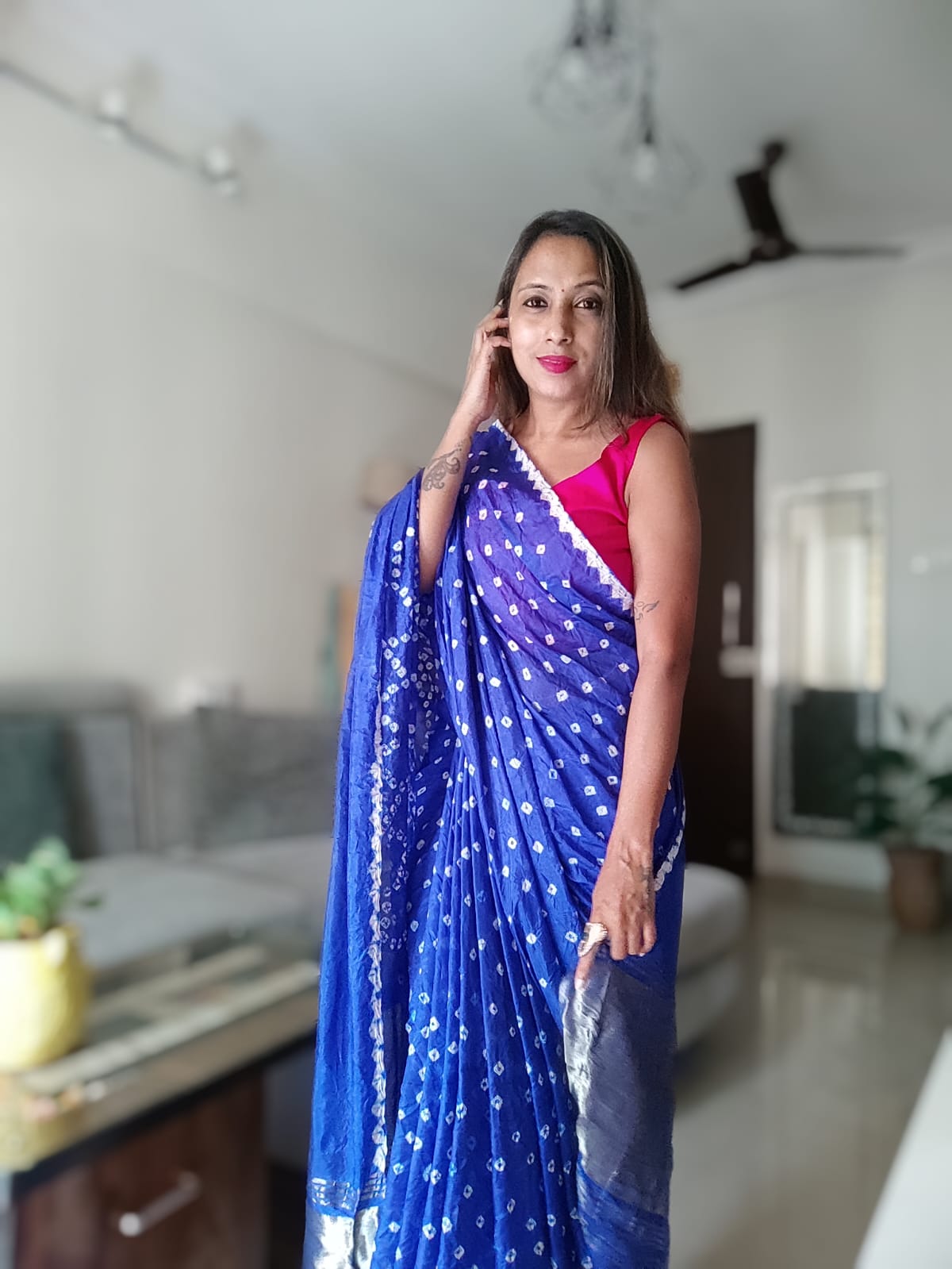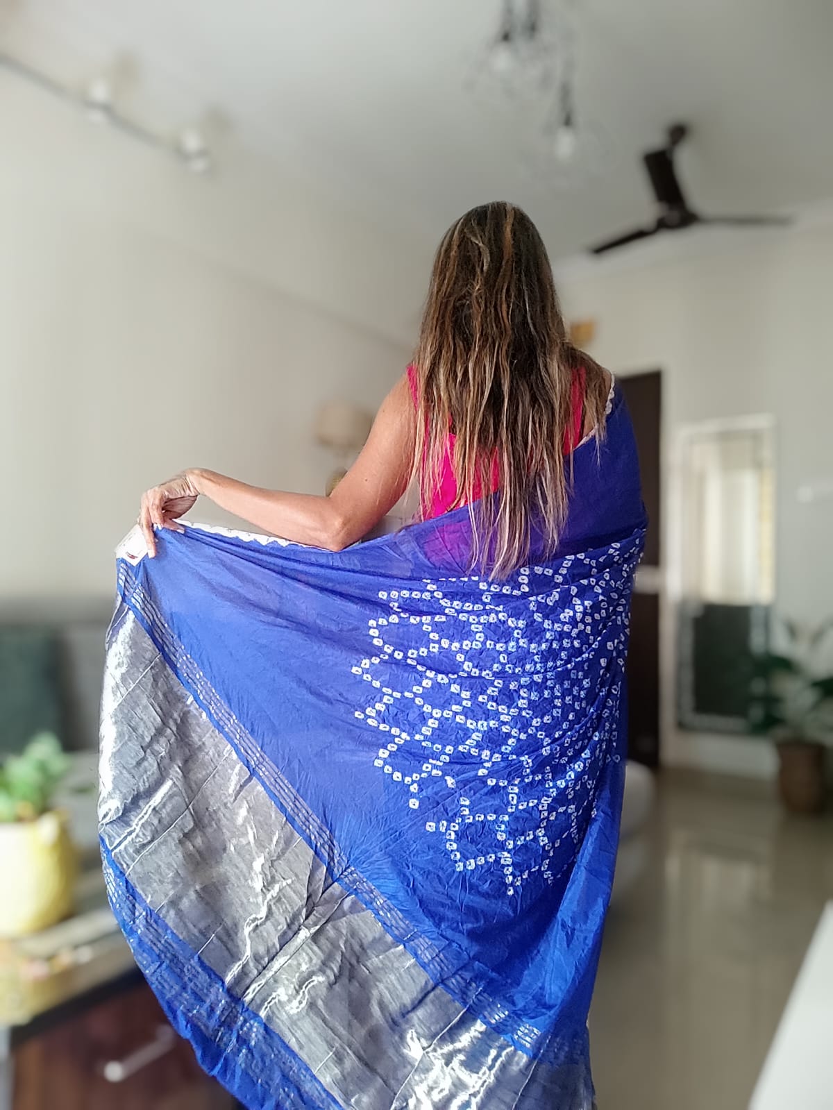 A Royal Blue Warm silk tie and dye Bandhani Lagdi Patta Pallu Saree.