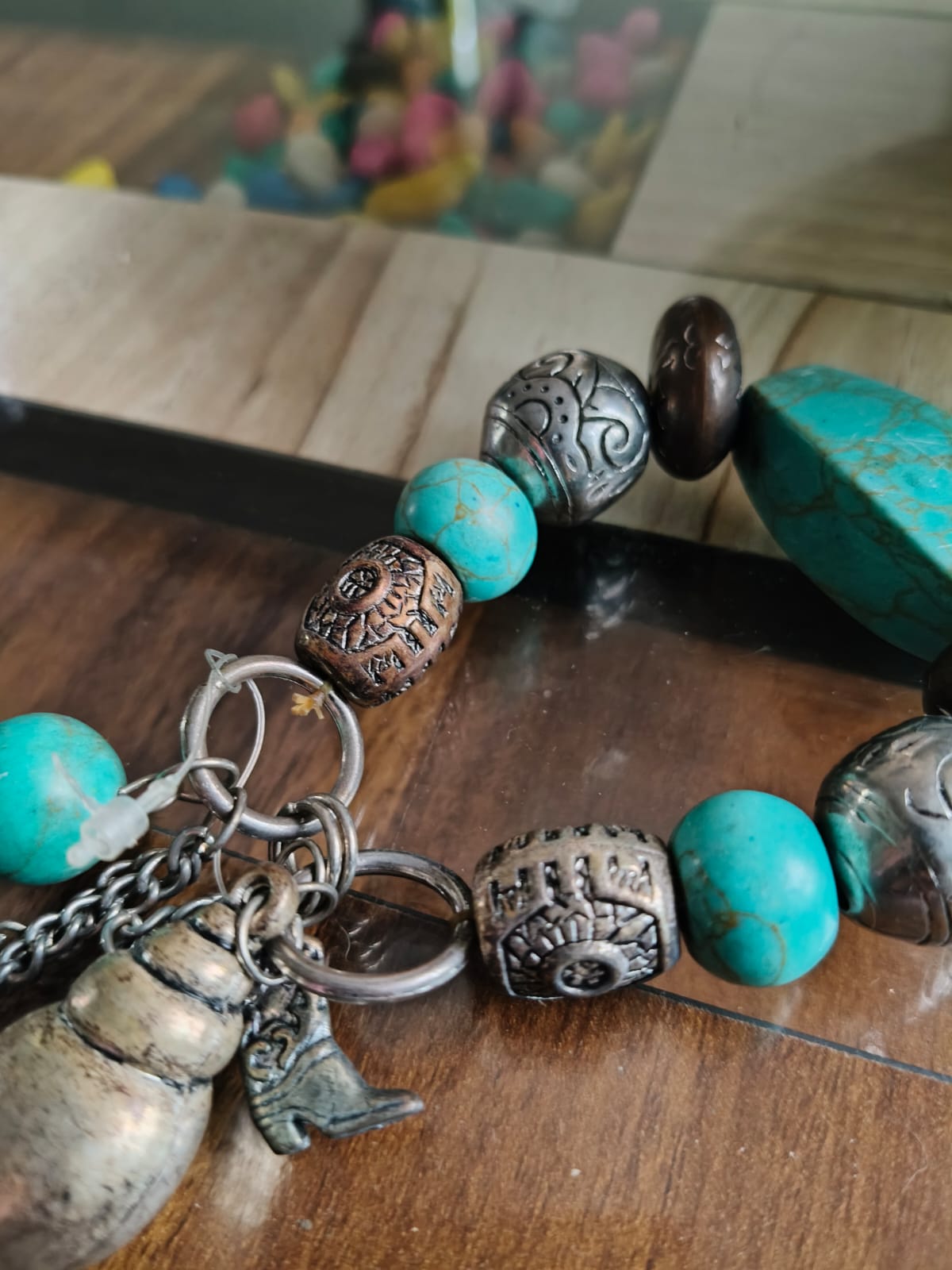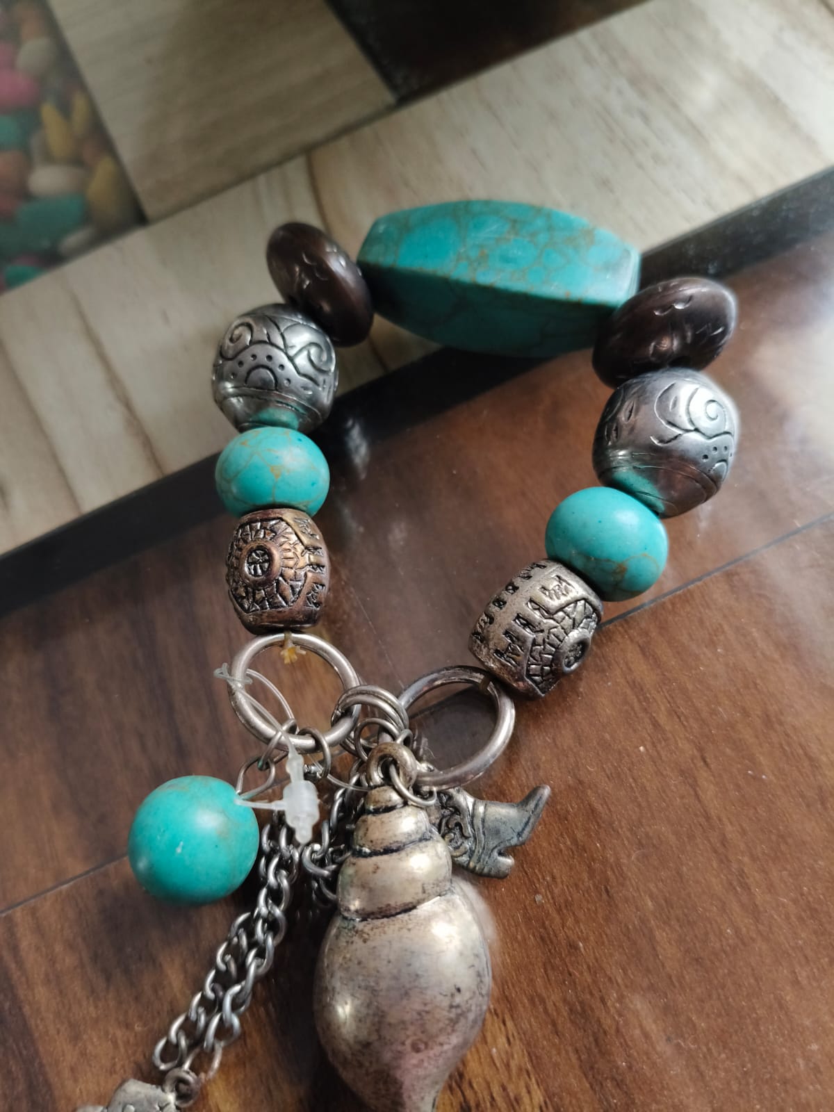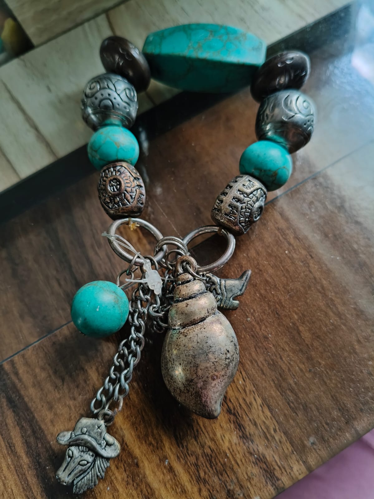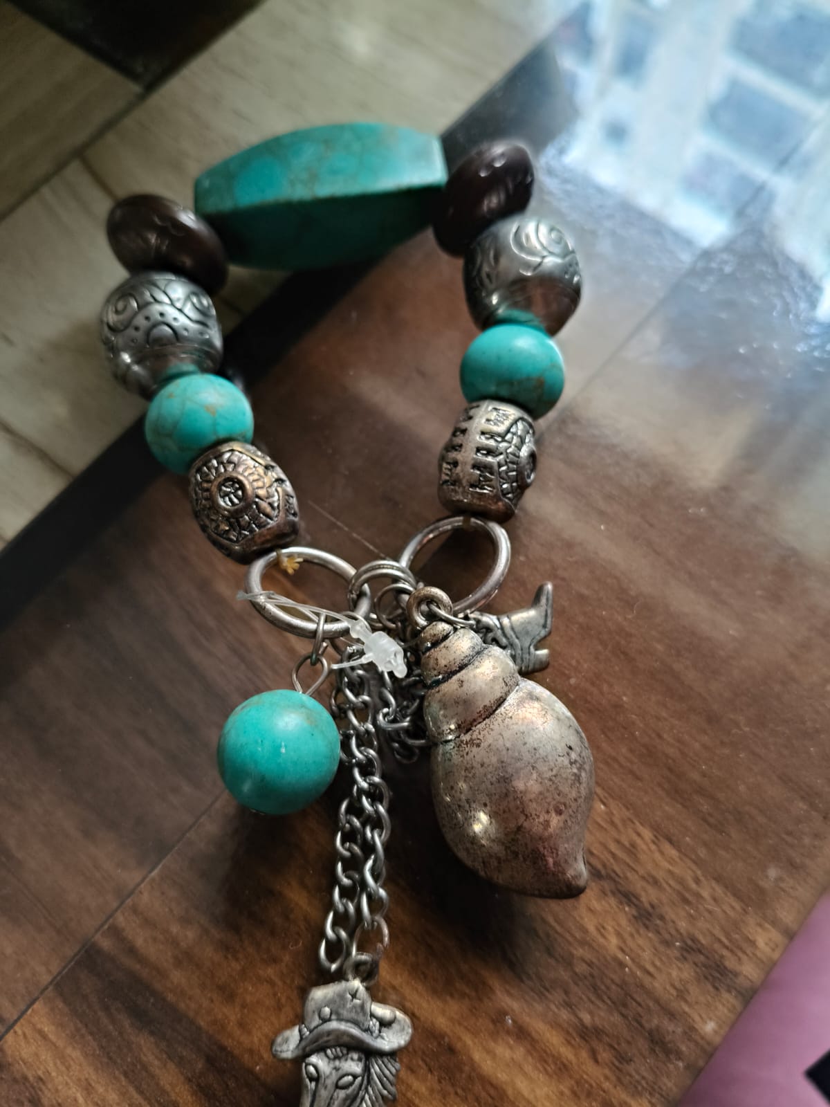 Beaded Bracelet With Horse, Shell, And Shoe Dangler.