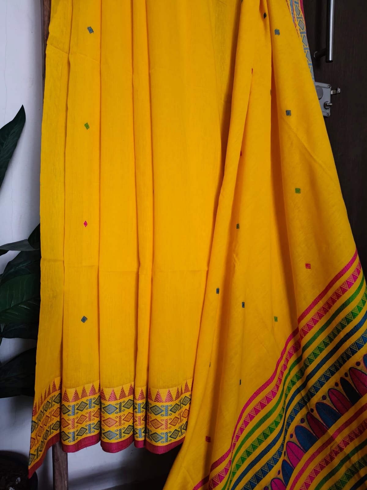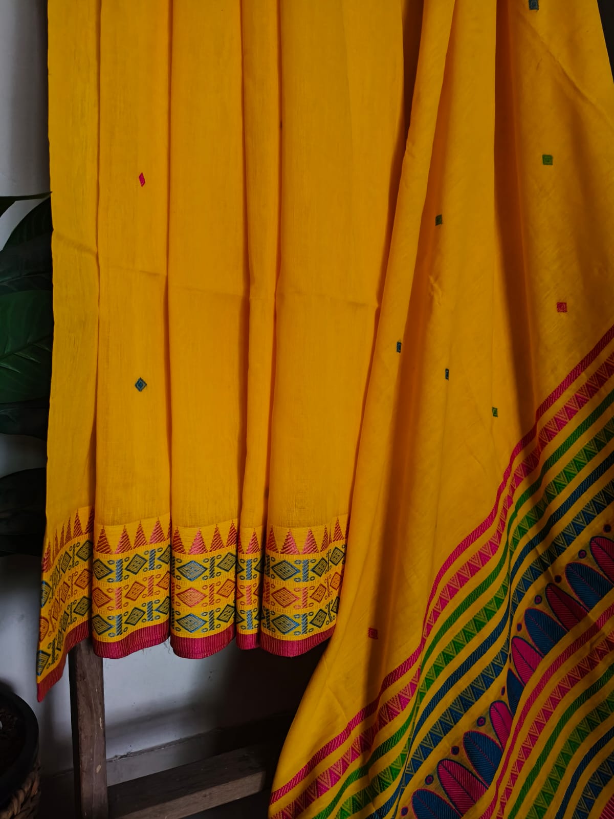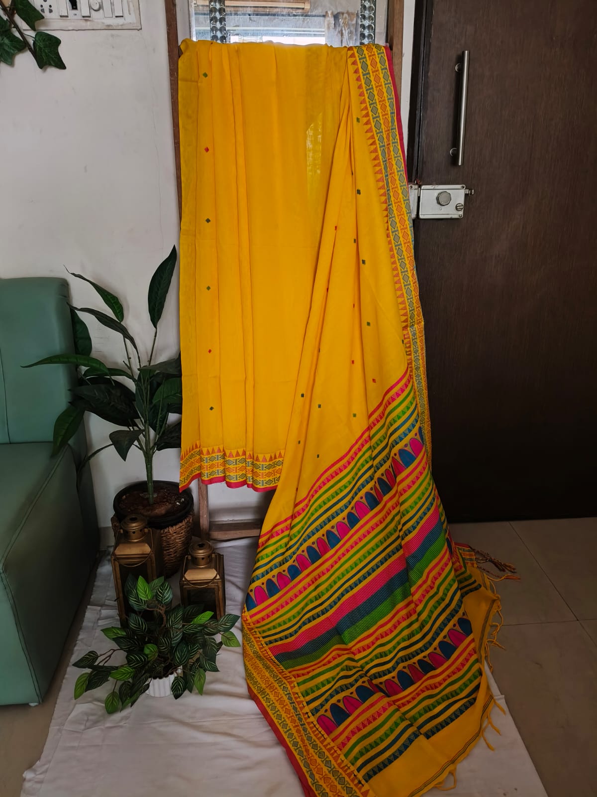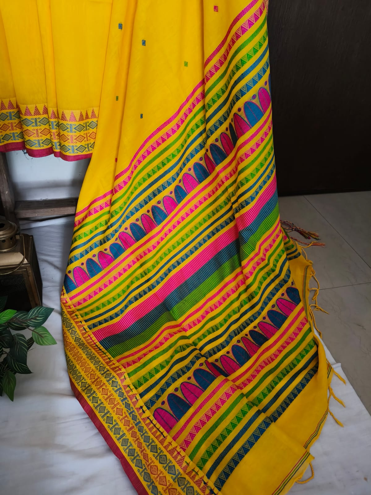A Yellow Handloom Dongaria Assam Cotton Saree With Blouse Piece