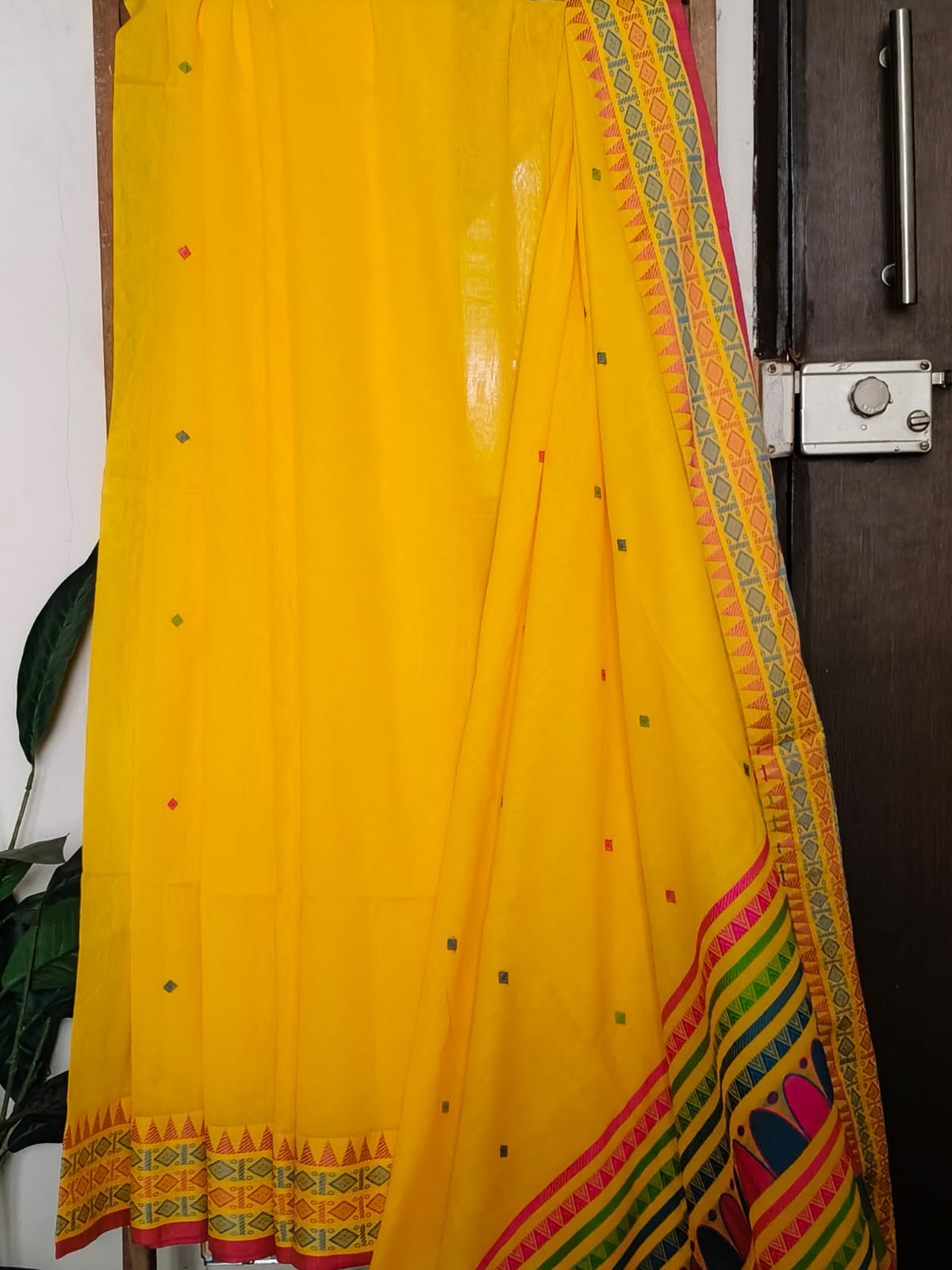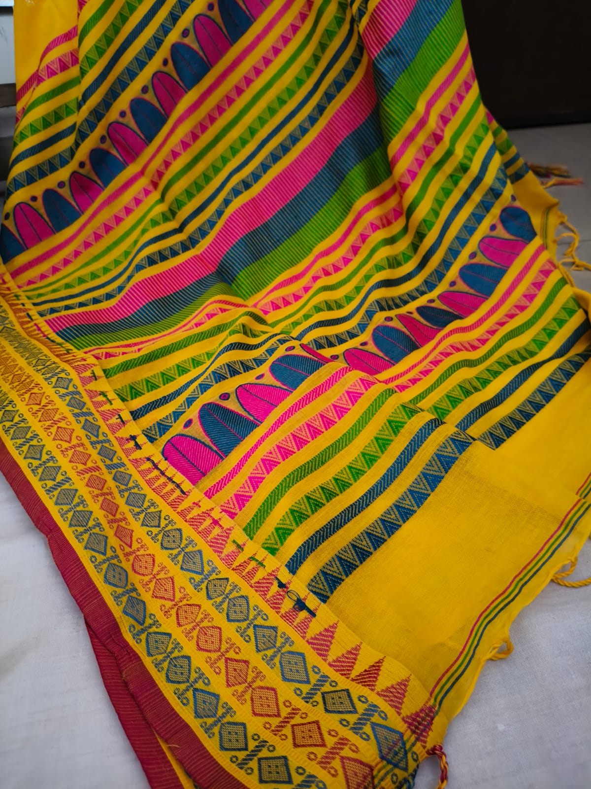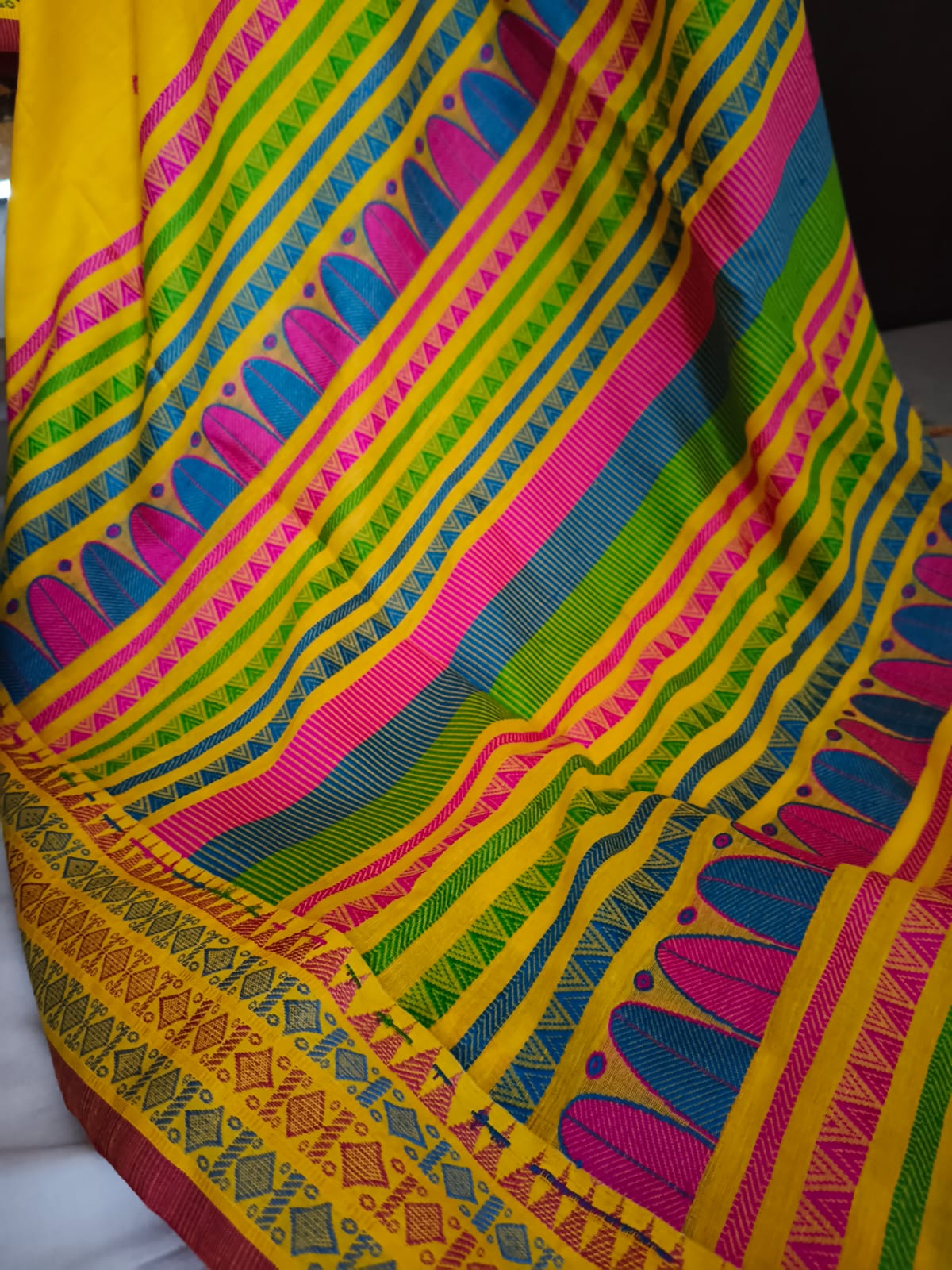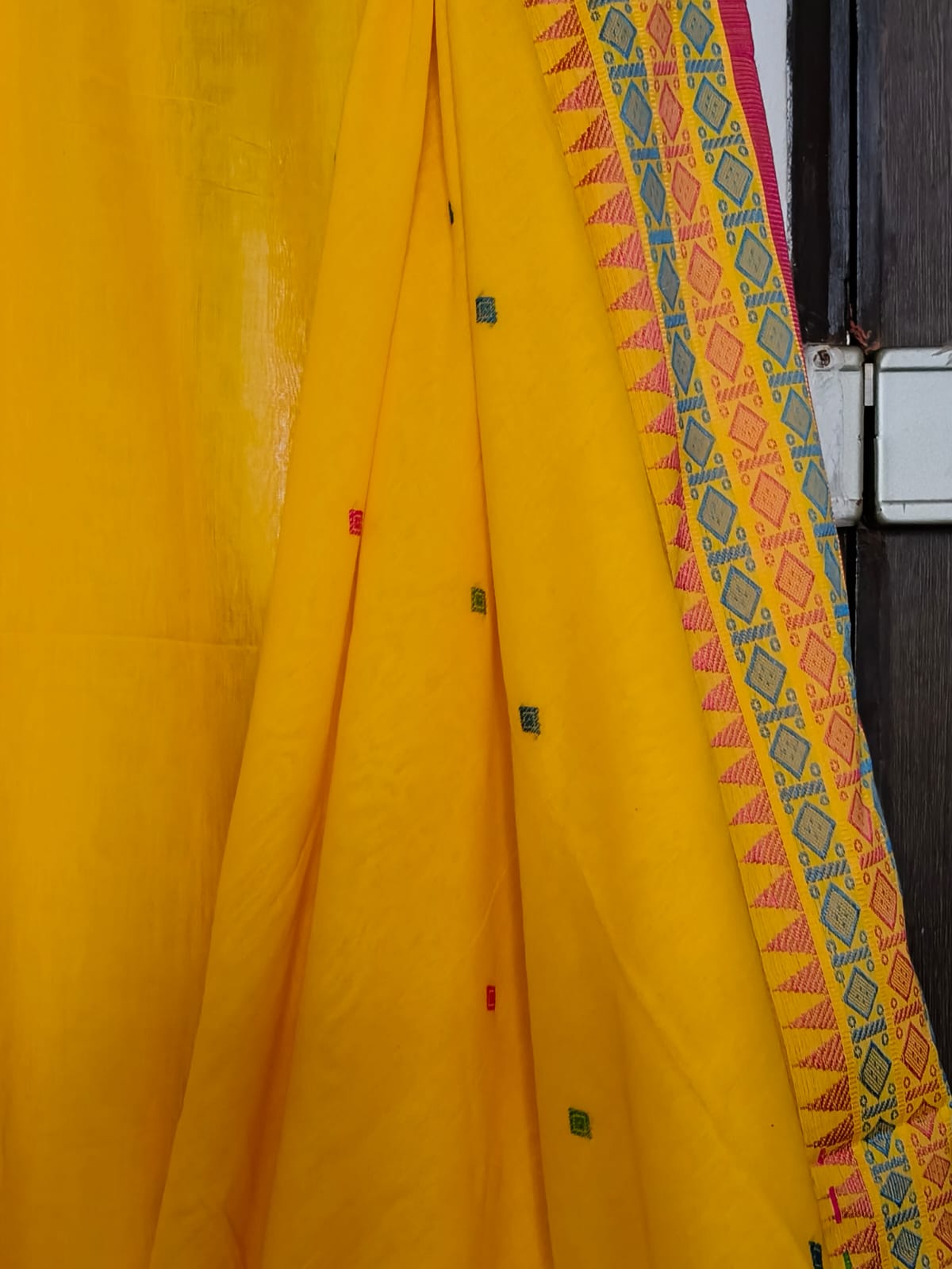 A Yellow Handloom Dongaria Assam Cotton Saree With Blouse Piece