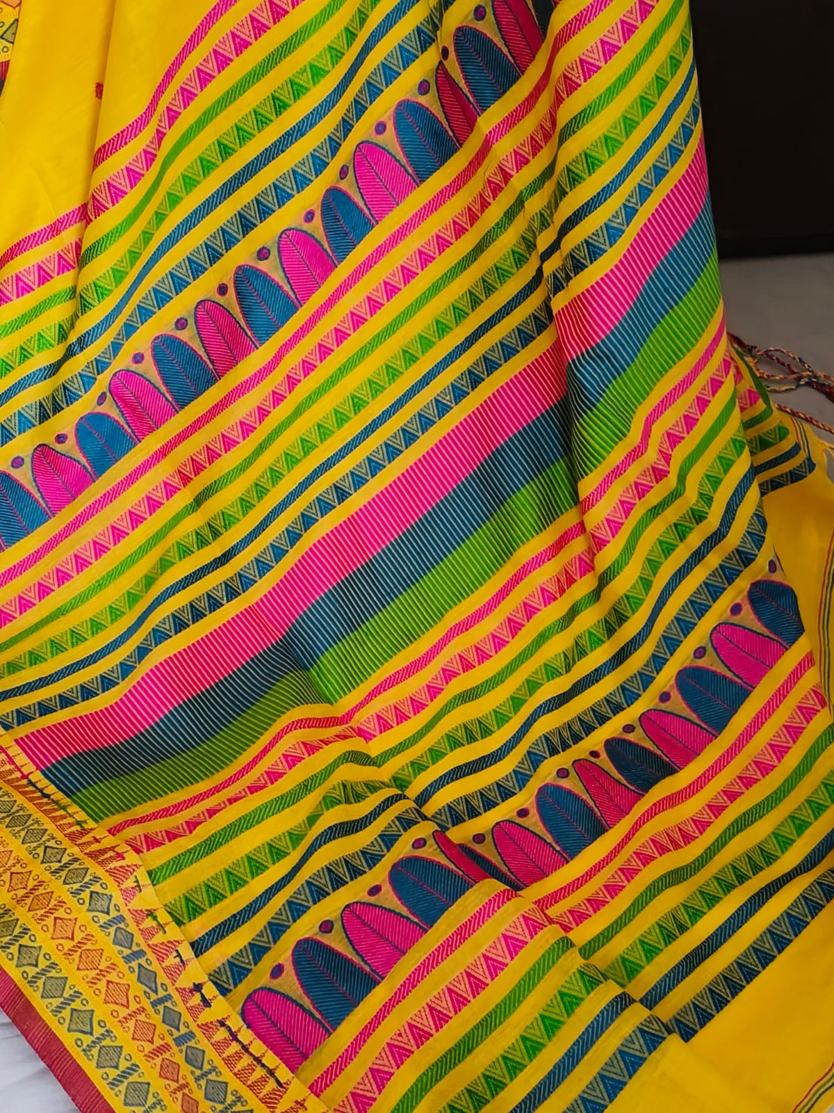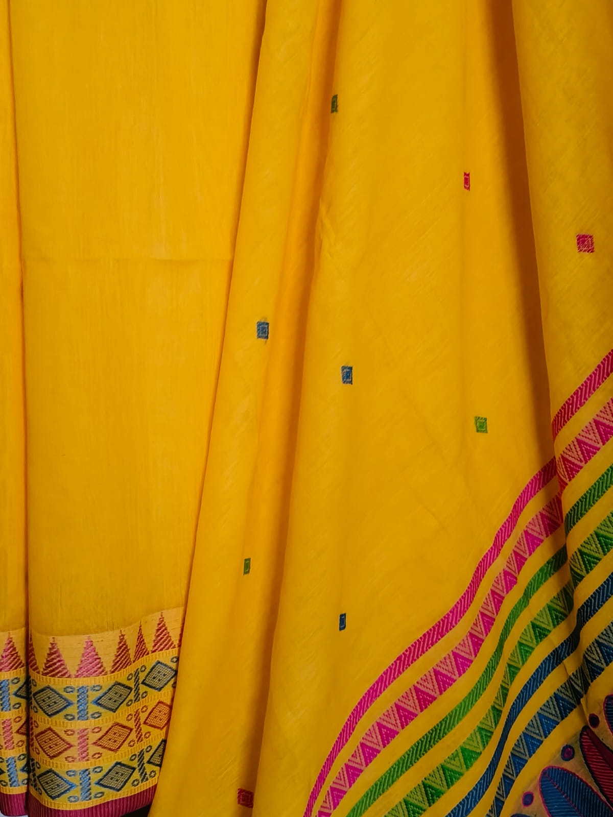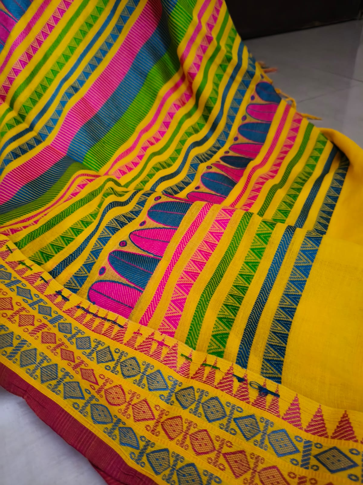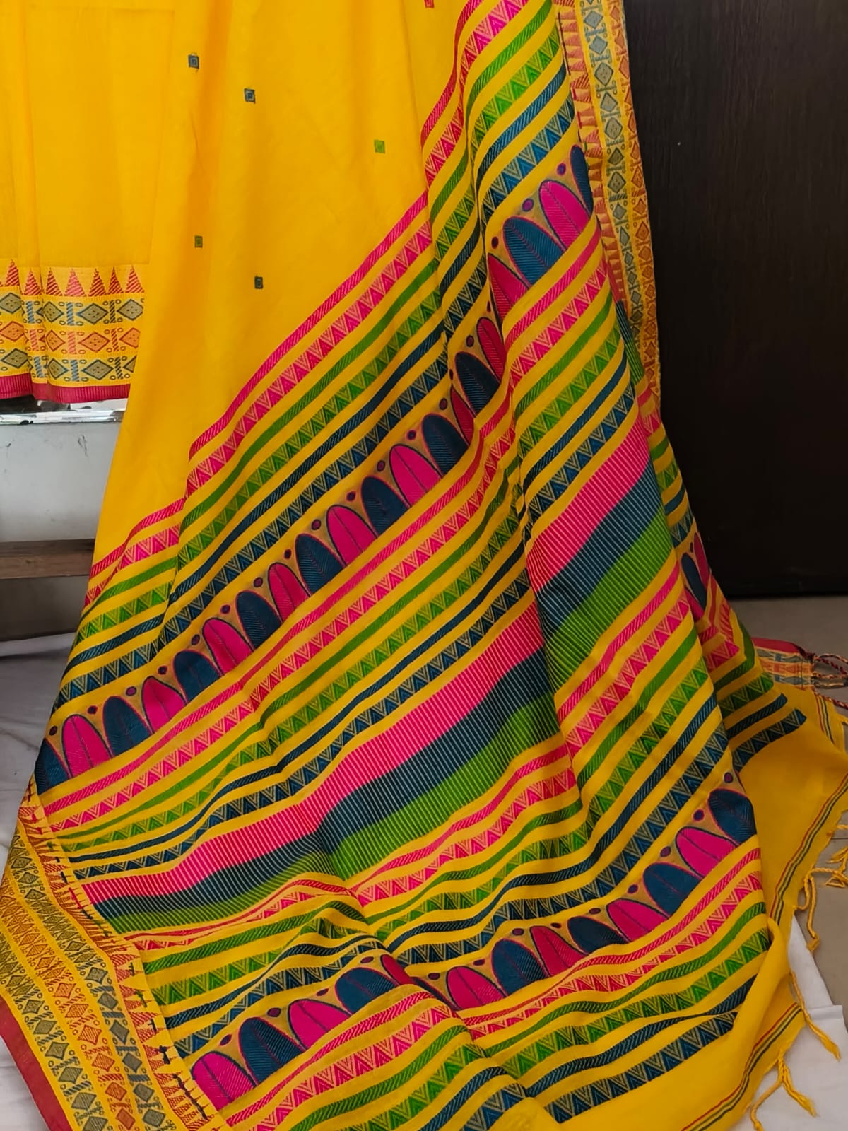 A Yellow Handloom Dongaria Assam Cotton Saree With Blouse Piece
