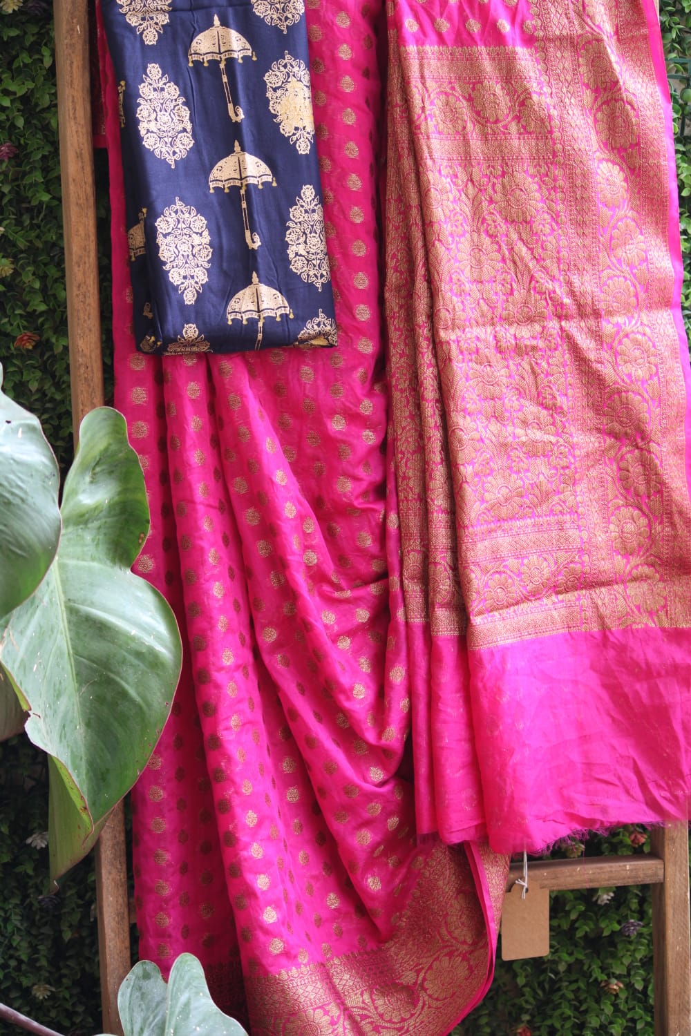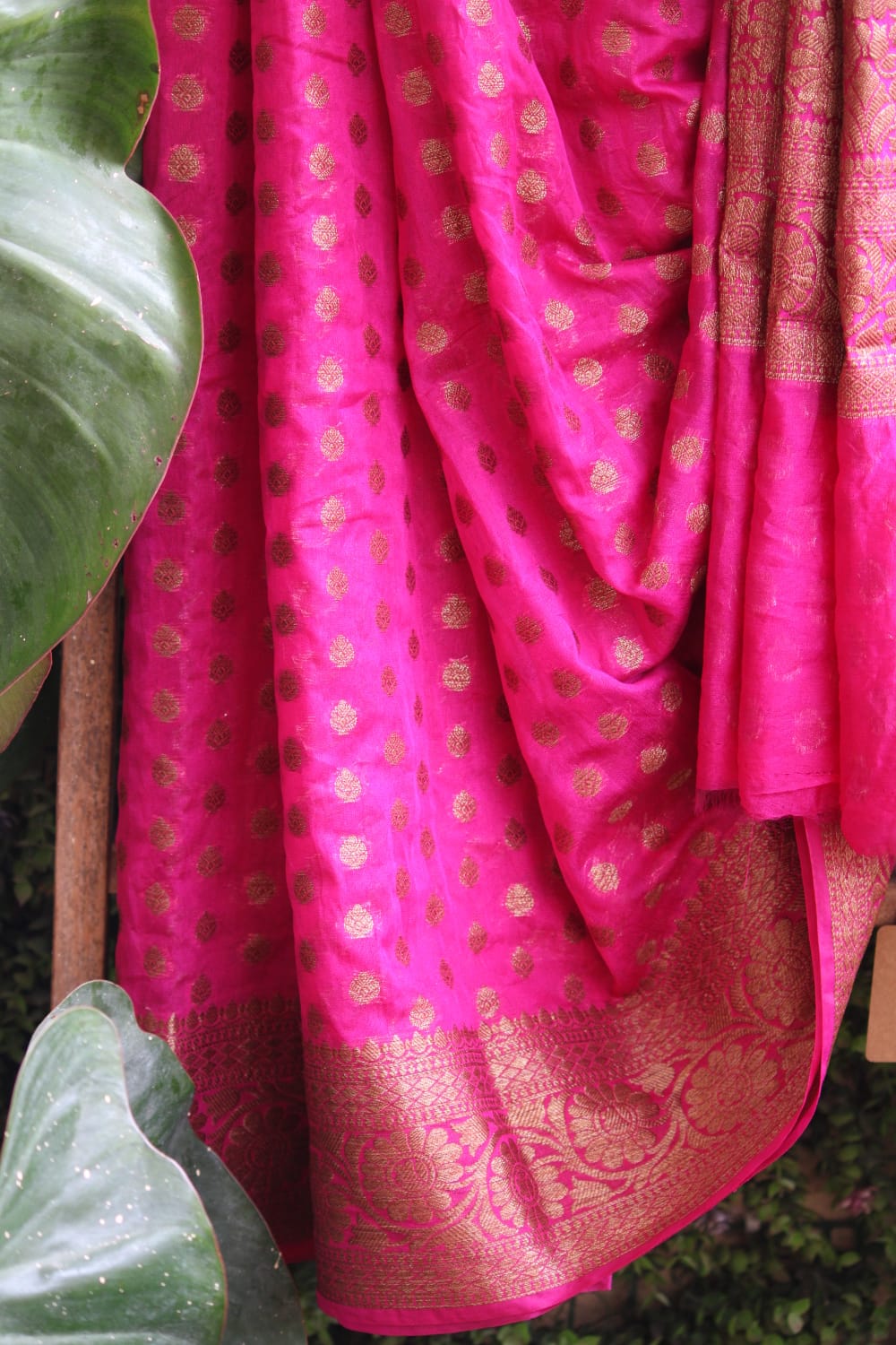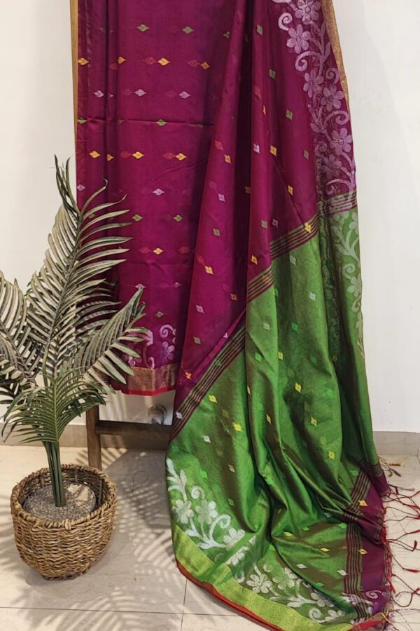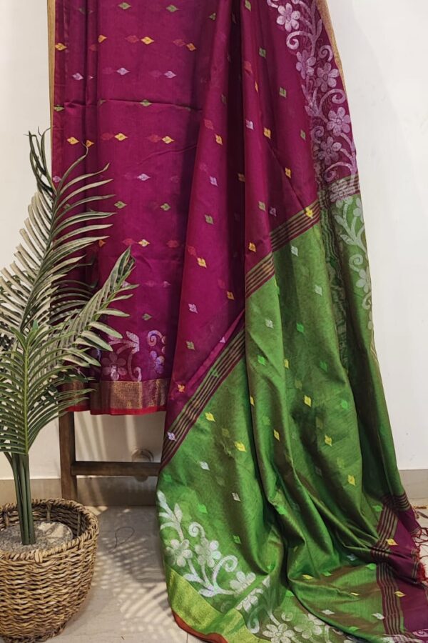 Magenta Khadi Georgette Banarasee Saree with Additional Contrast Blouse Piece