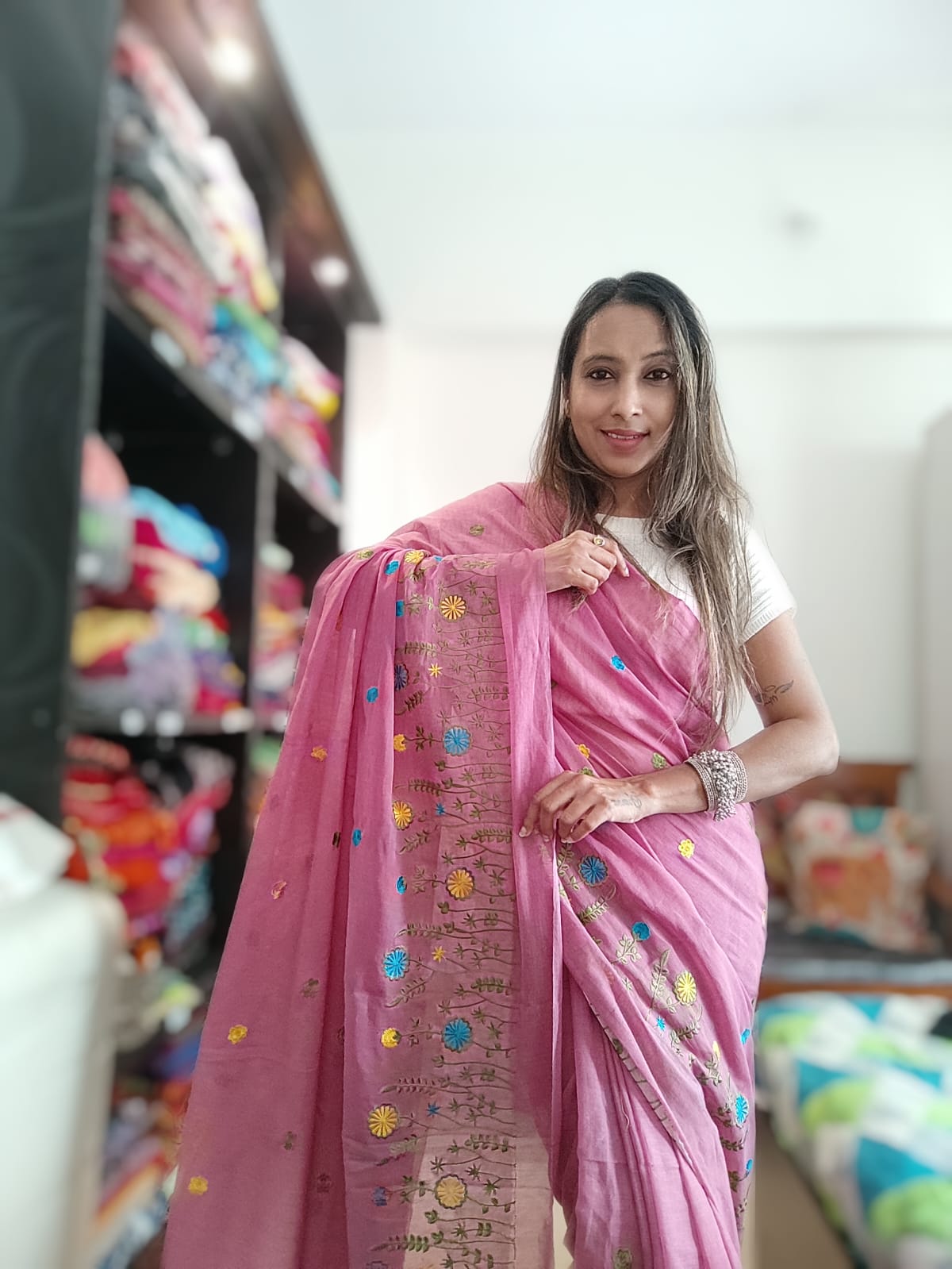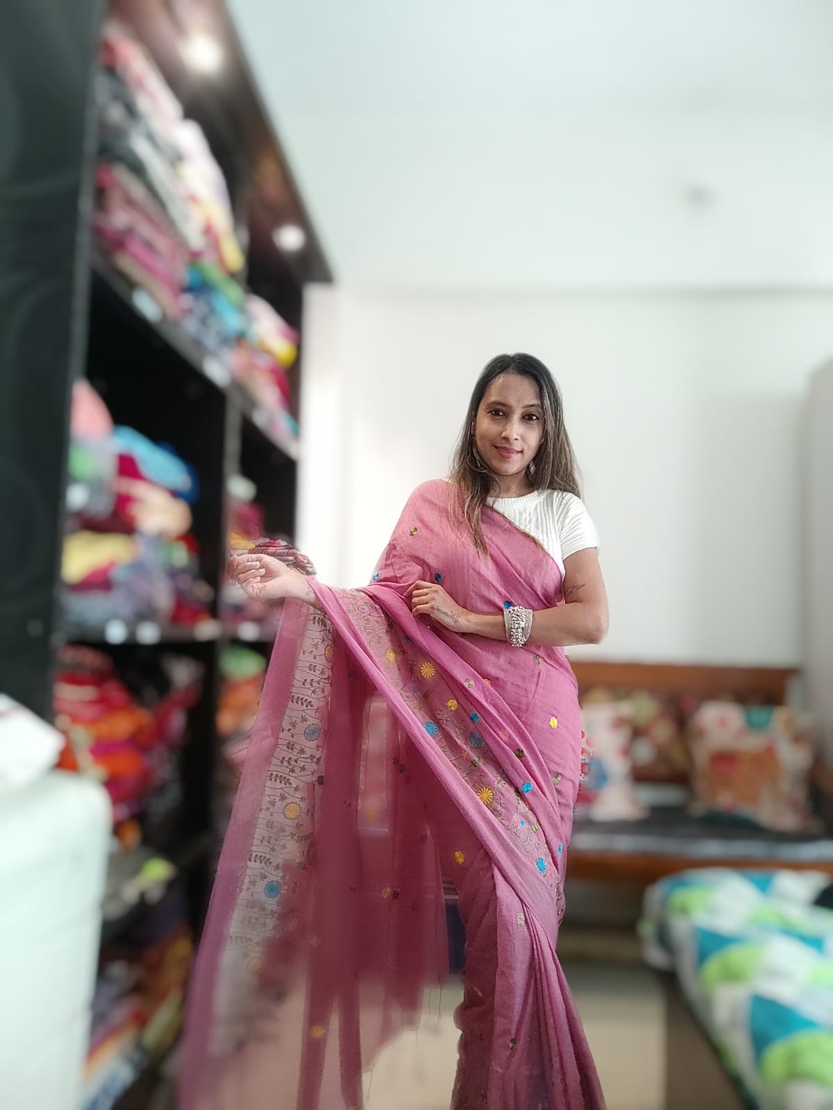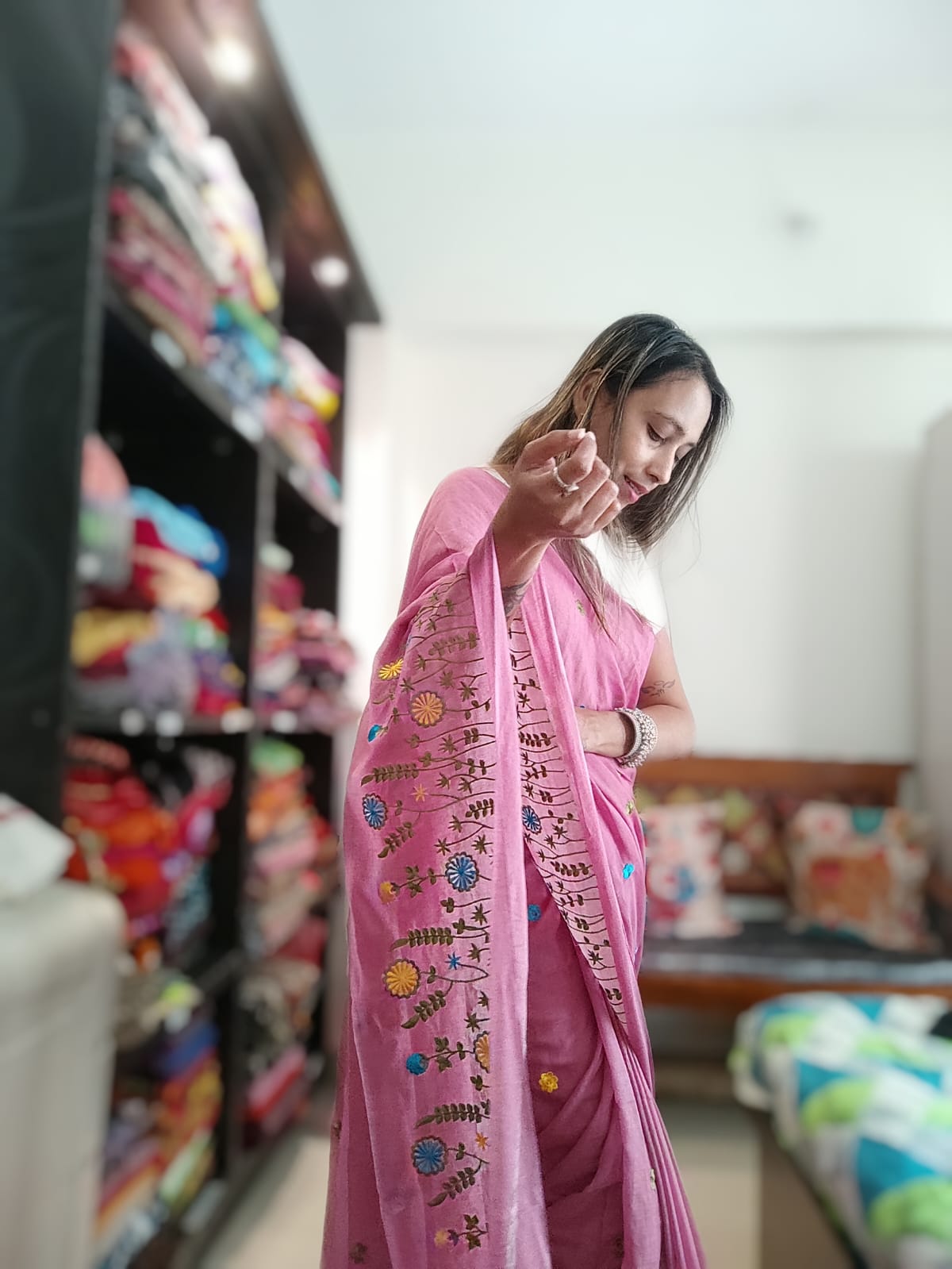 Mauve Pink Khadi Cotton Embroidered Saree.