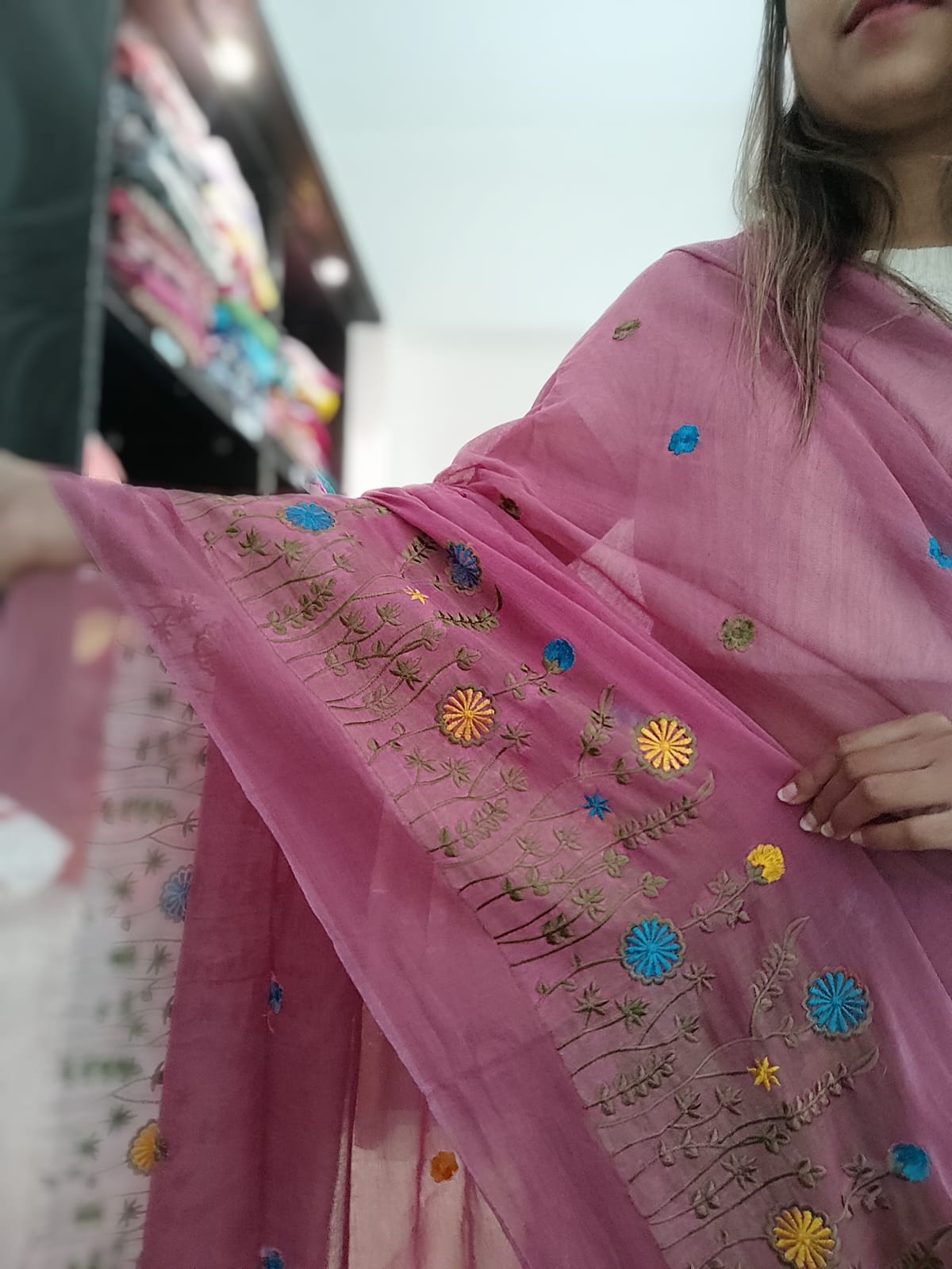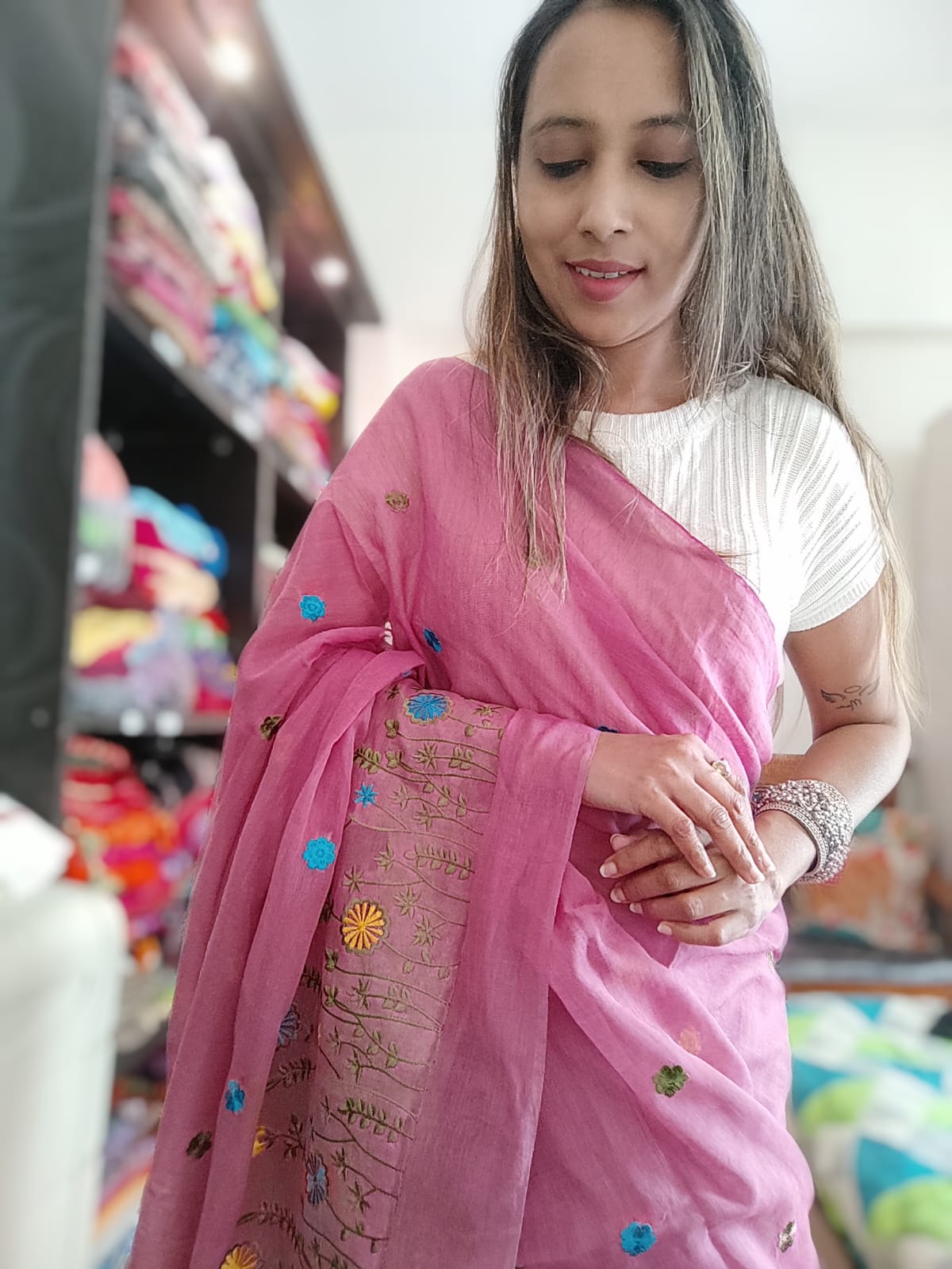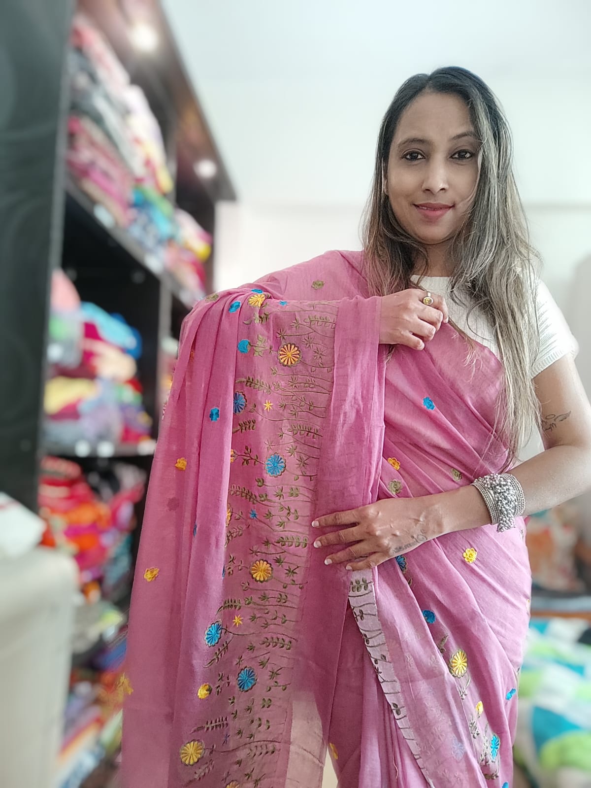 Mauve Pink Khadi Cotton Embroidered Saree.