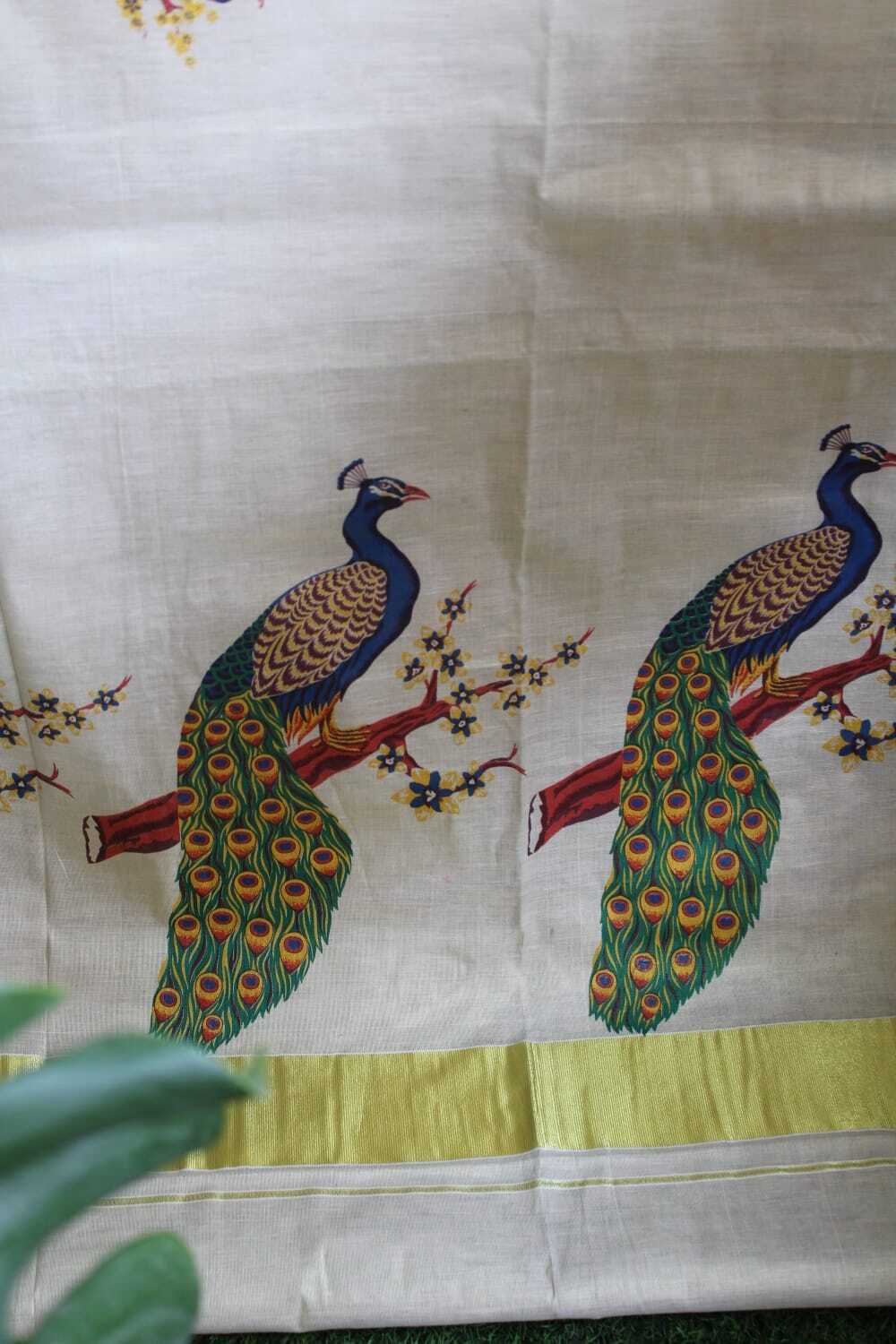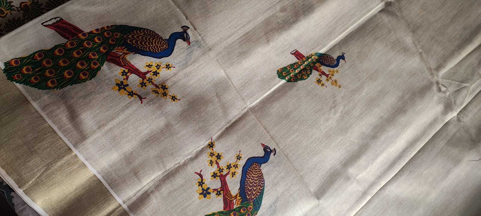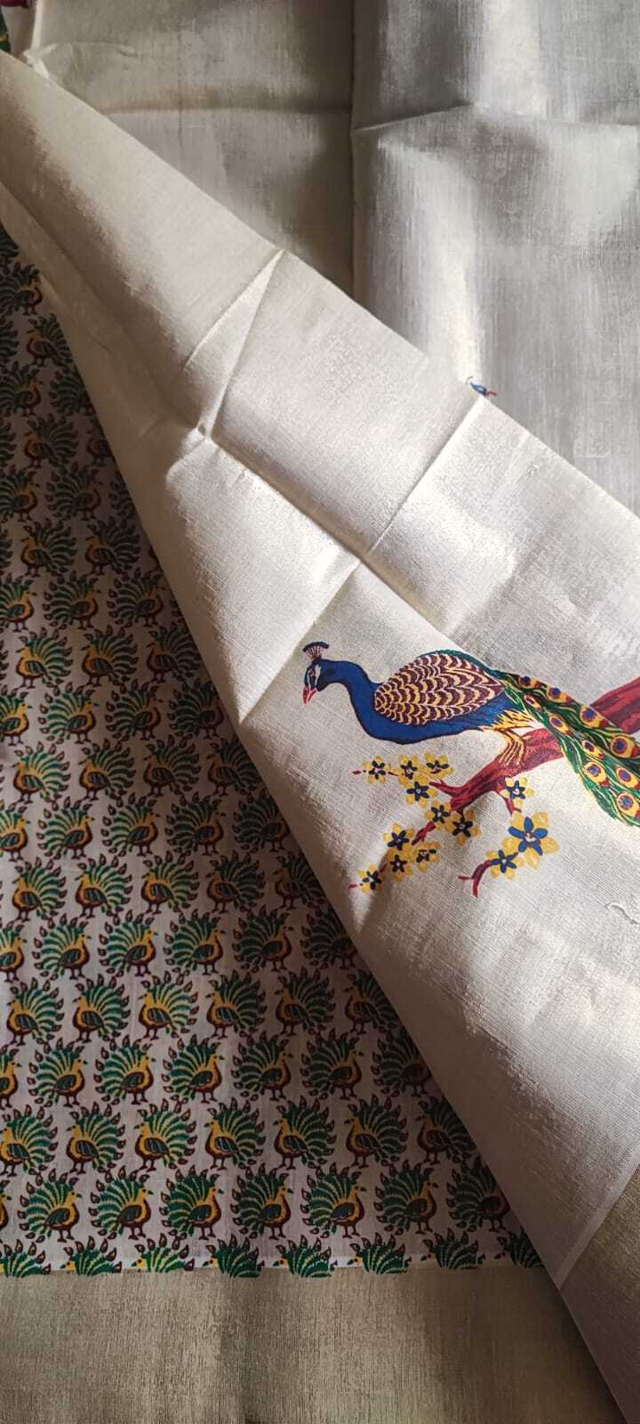 A Kerala Kasavu Cotton Tissue Saree with Running Blouse