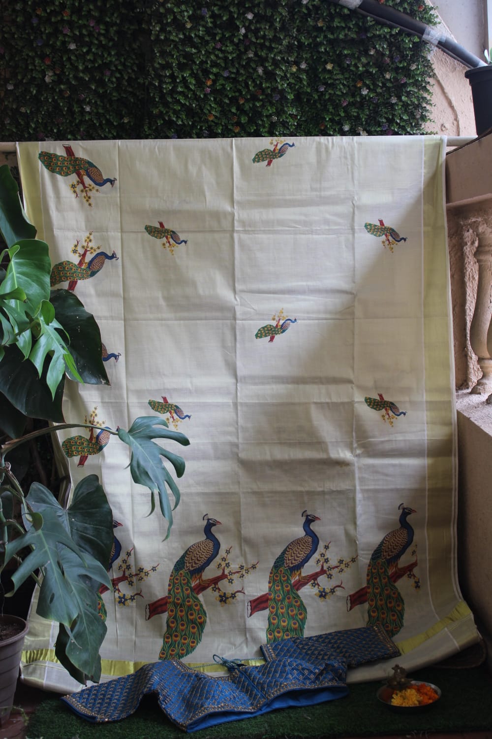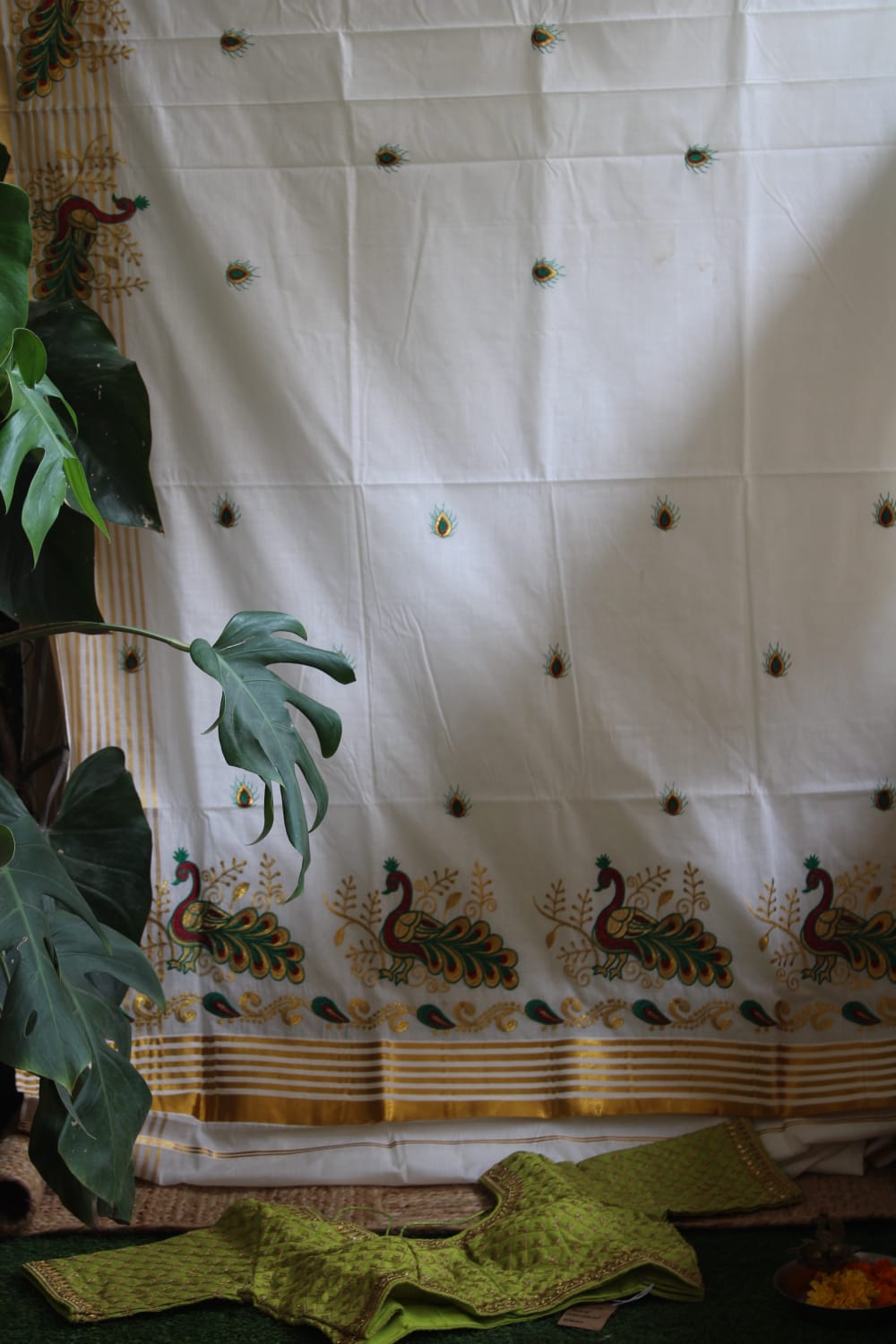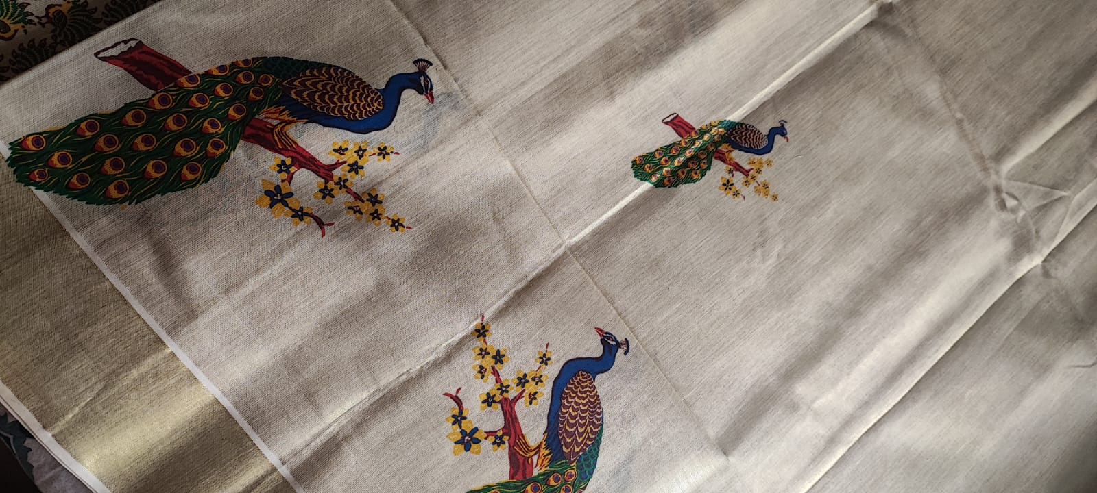 A Kerala Kasavu Cotton Tissue Saree with Running Blouse