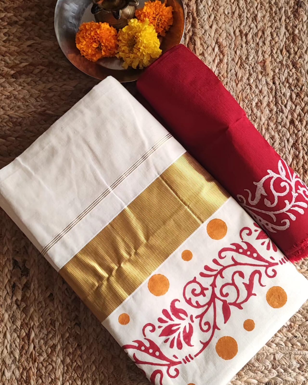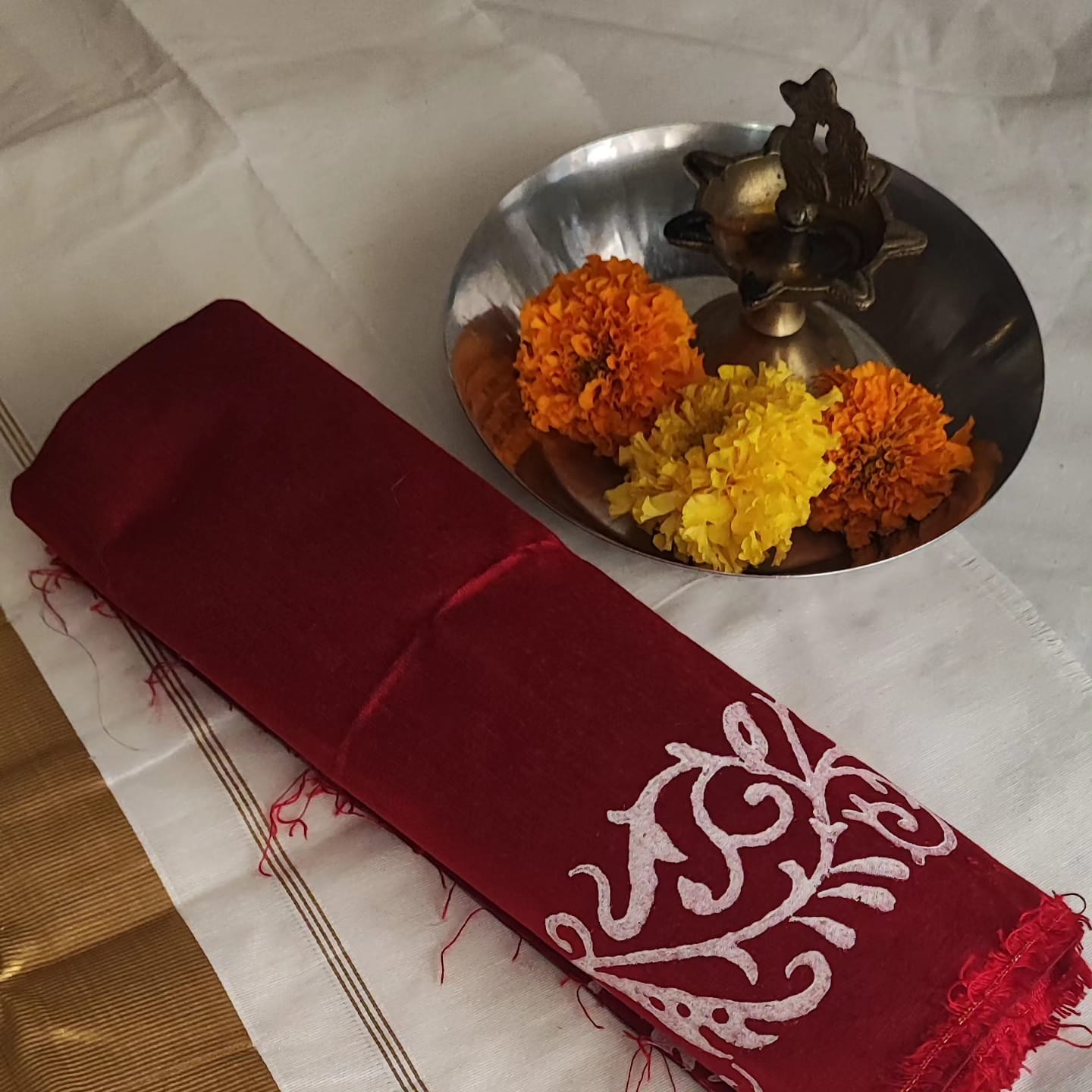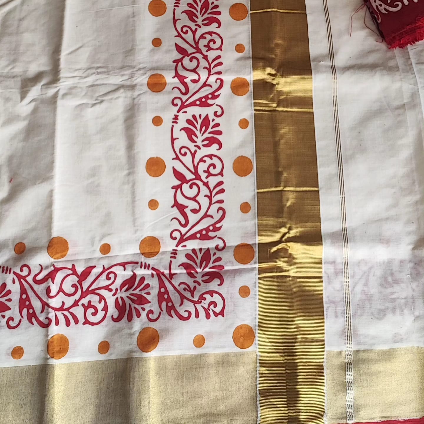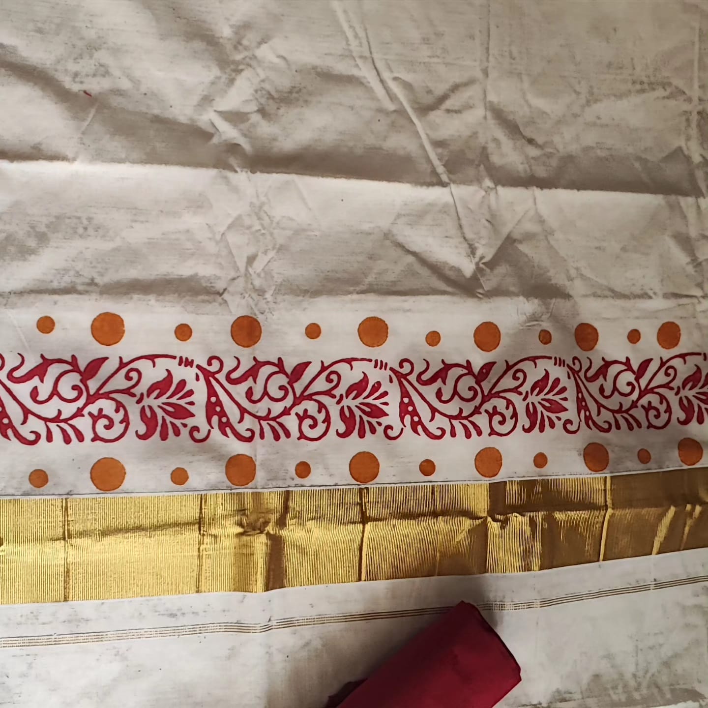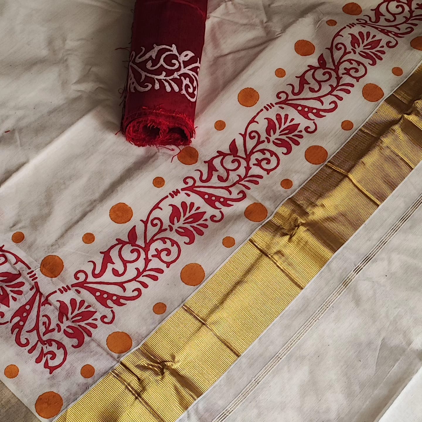 A Golden Border Cotton Hand Painted Saree with Contrast Blouse