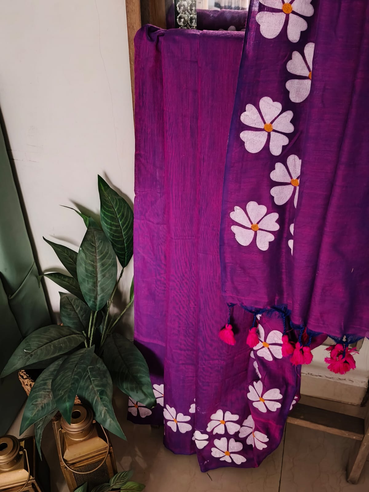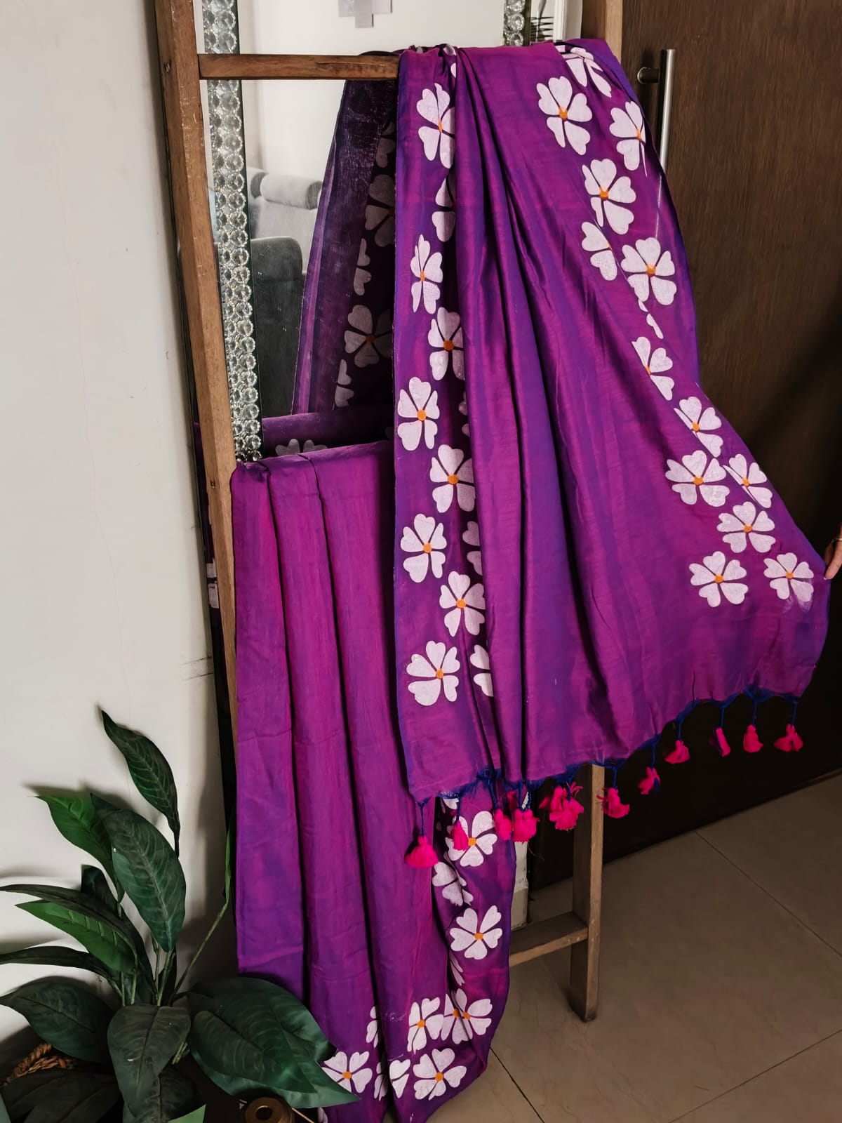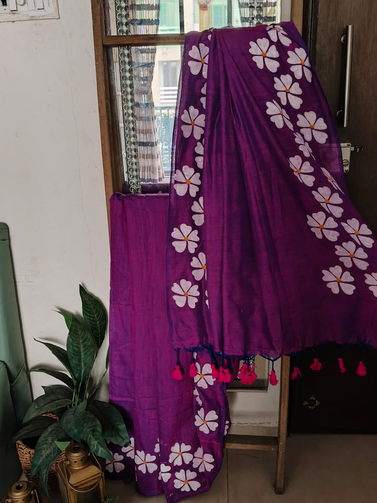 A Purple Handpainted Prajakta Mul Cotton Saree. No BLouse.