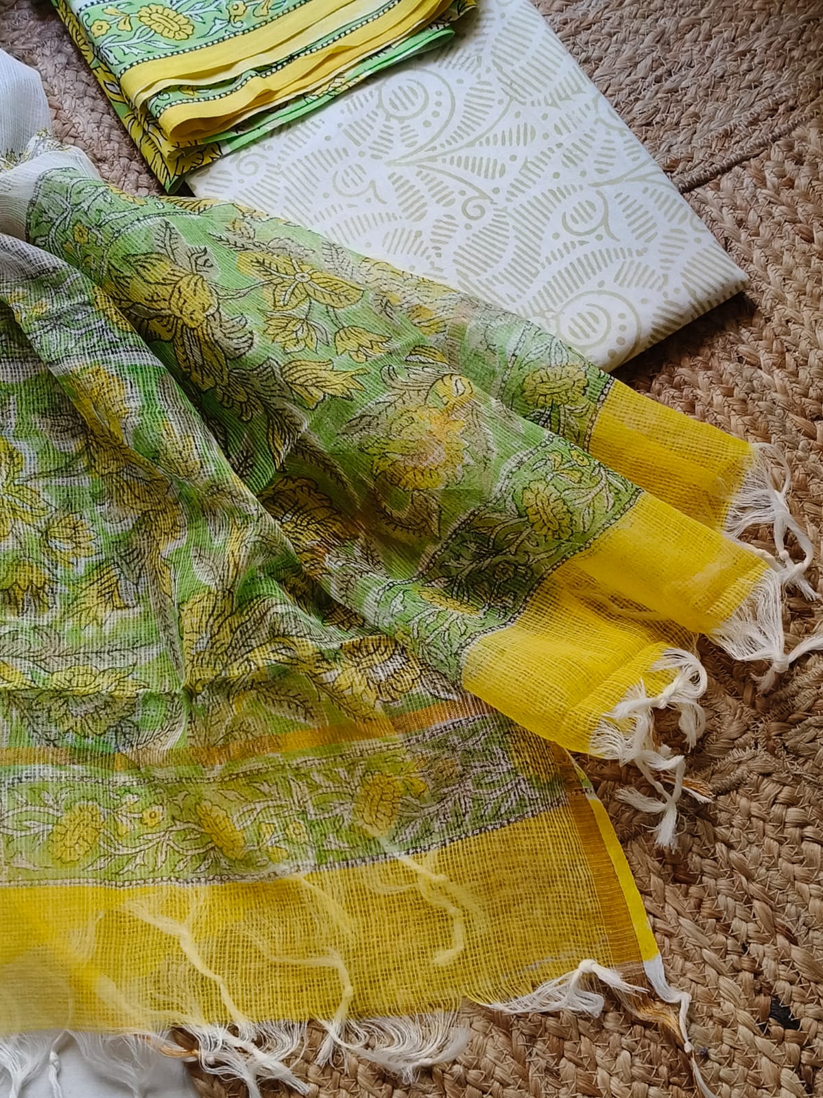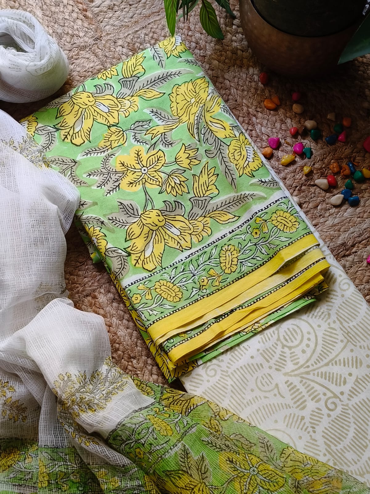 Pistachio Sangeneri Cotton Suit Set With Kota Dupatta