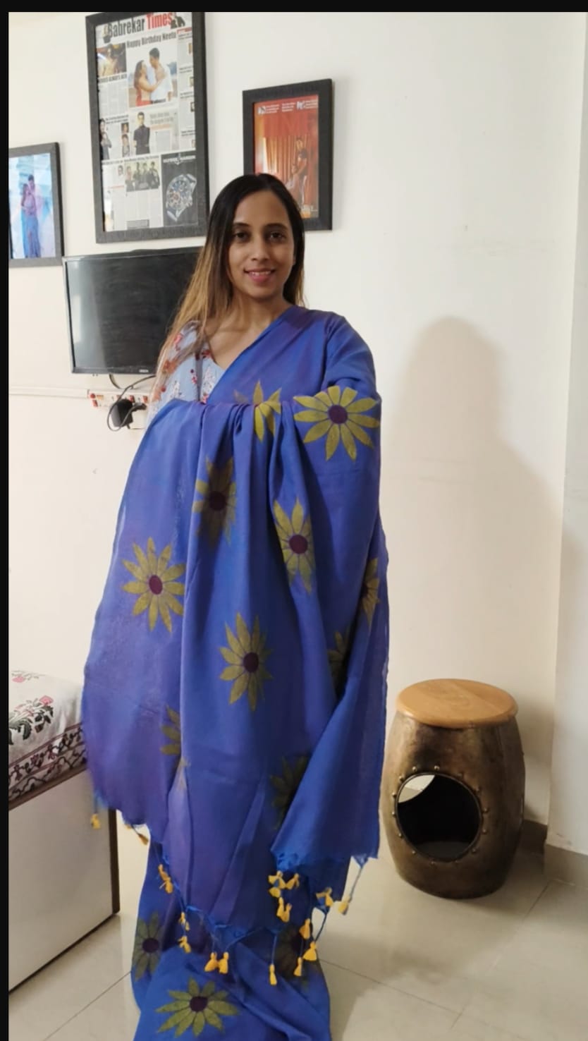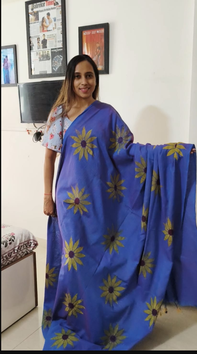 A Purple Handpainted Sunflower Khadi Cotton SareeĀ . Comes with Running Blouse Piece.