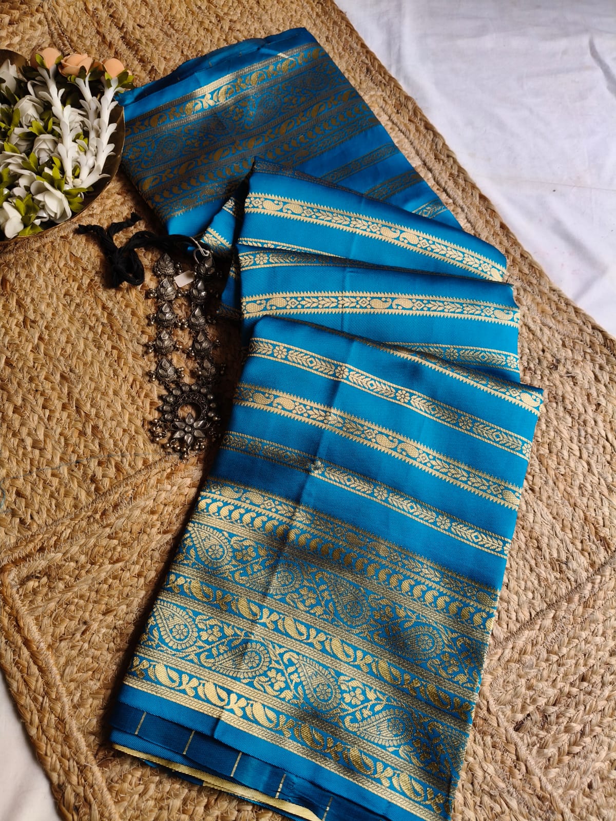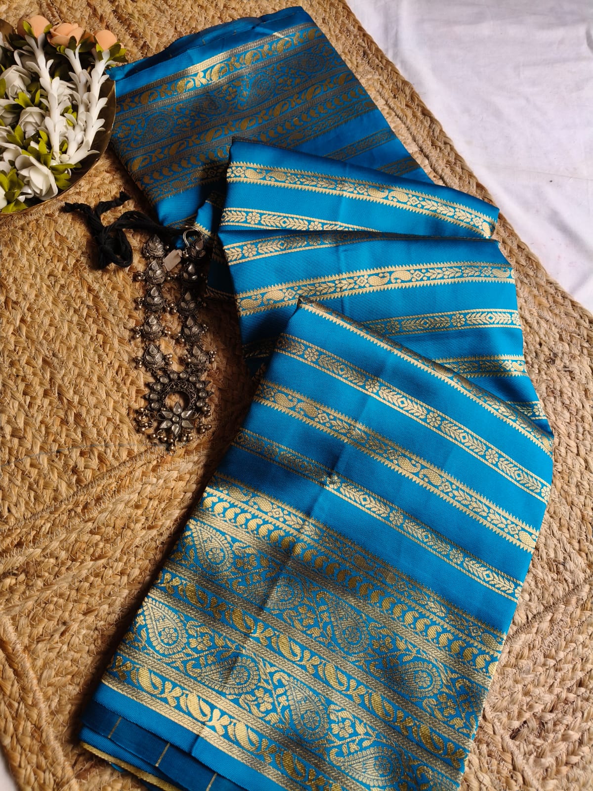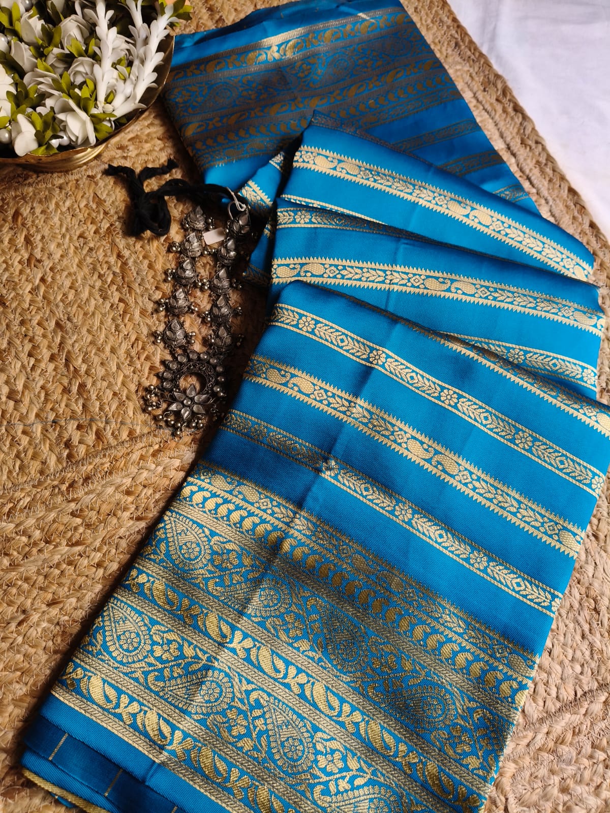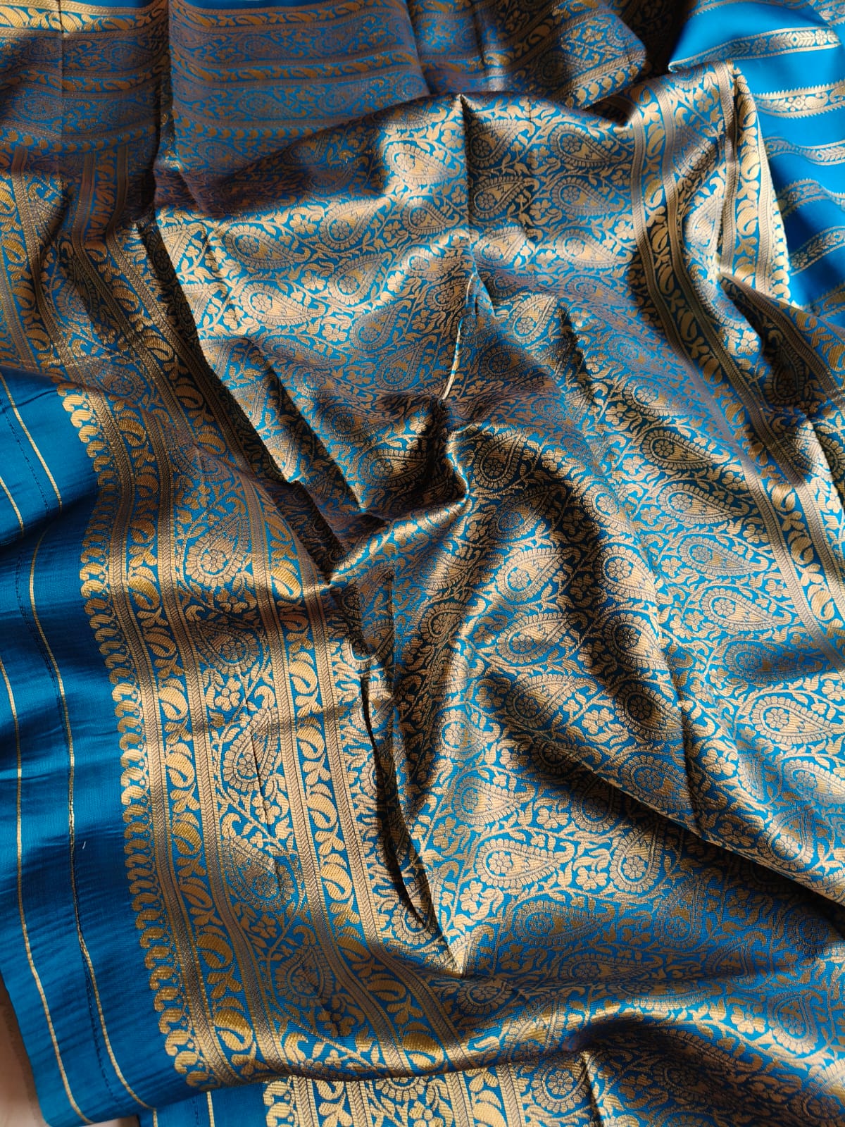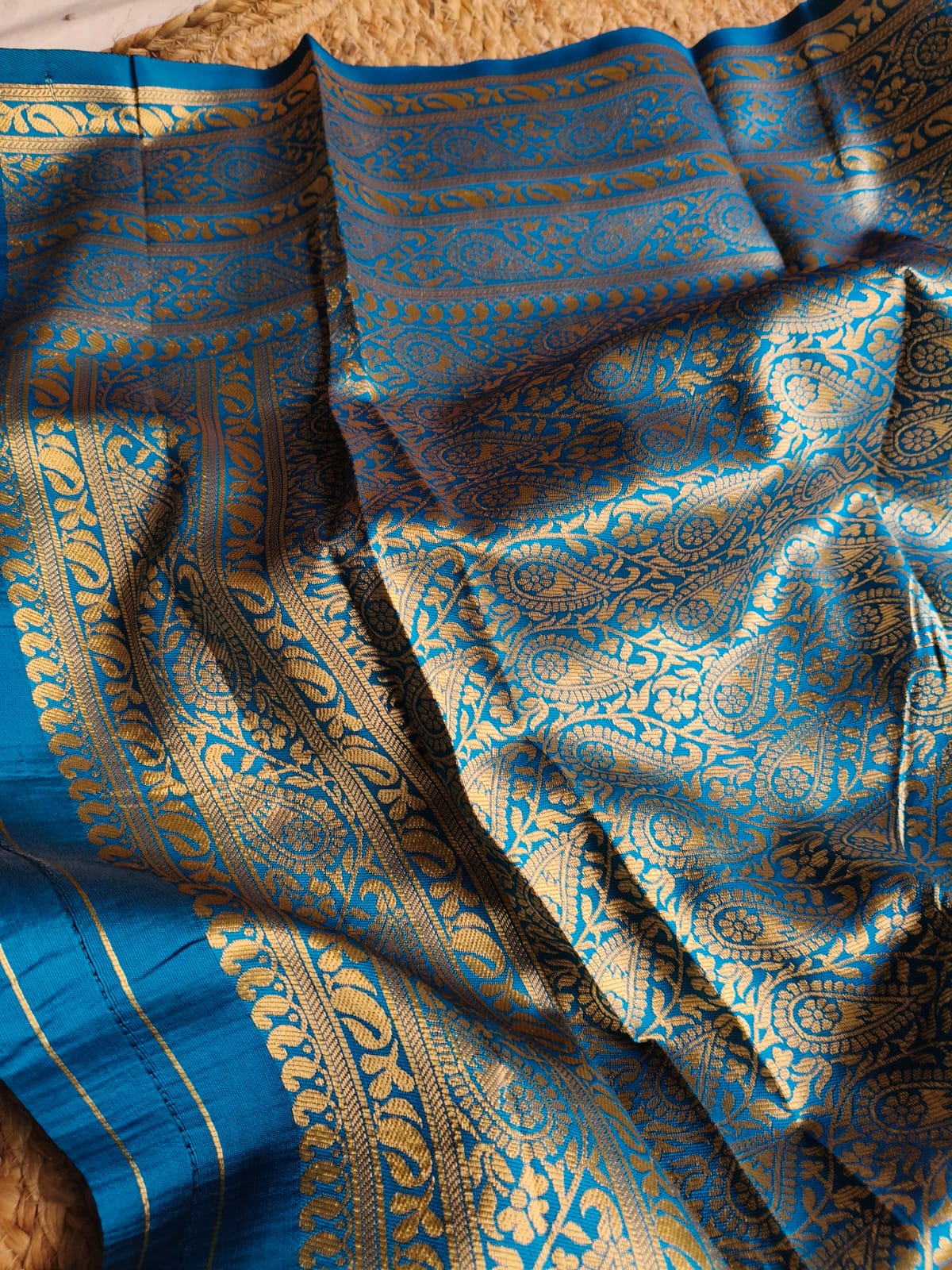 Turquoise Katan Warm Silk Banarasi Saree with Additional Contrast Blouse Piece
