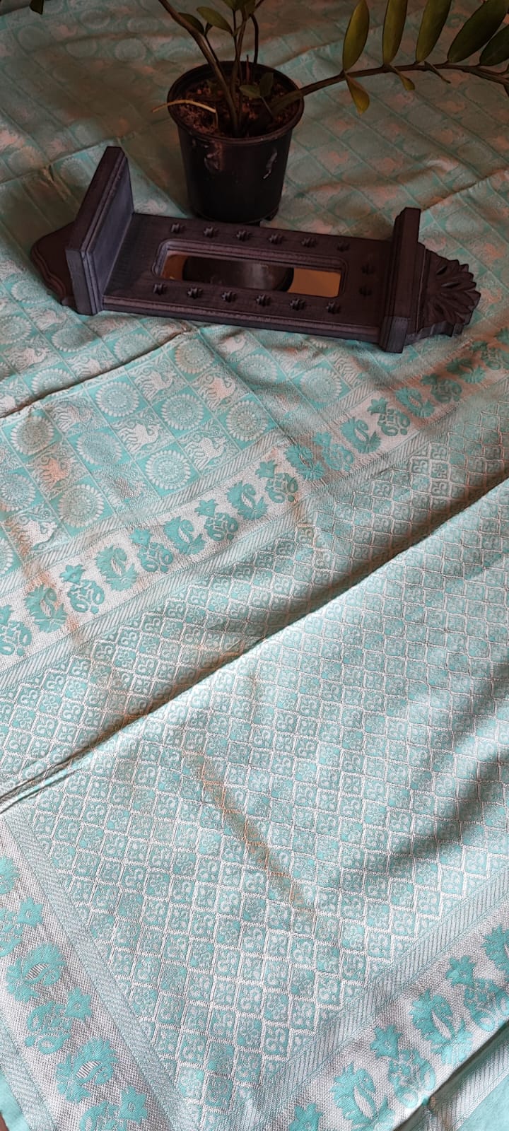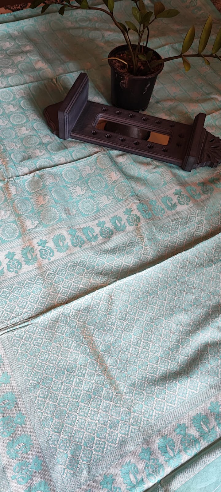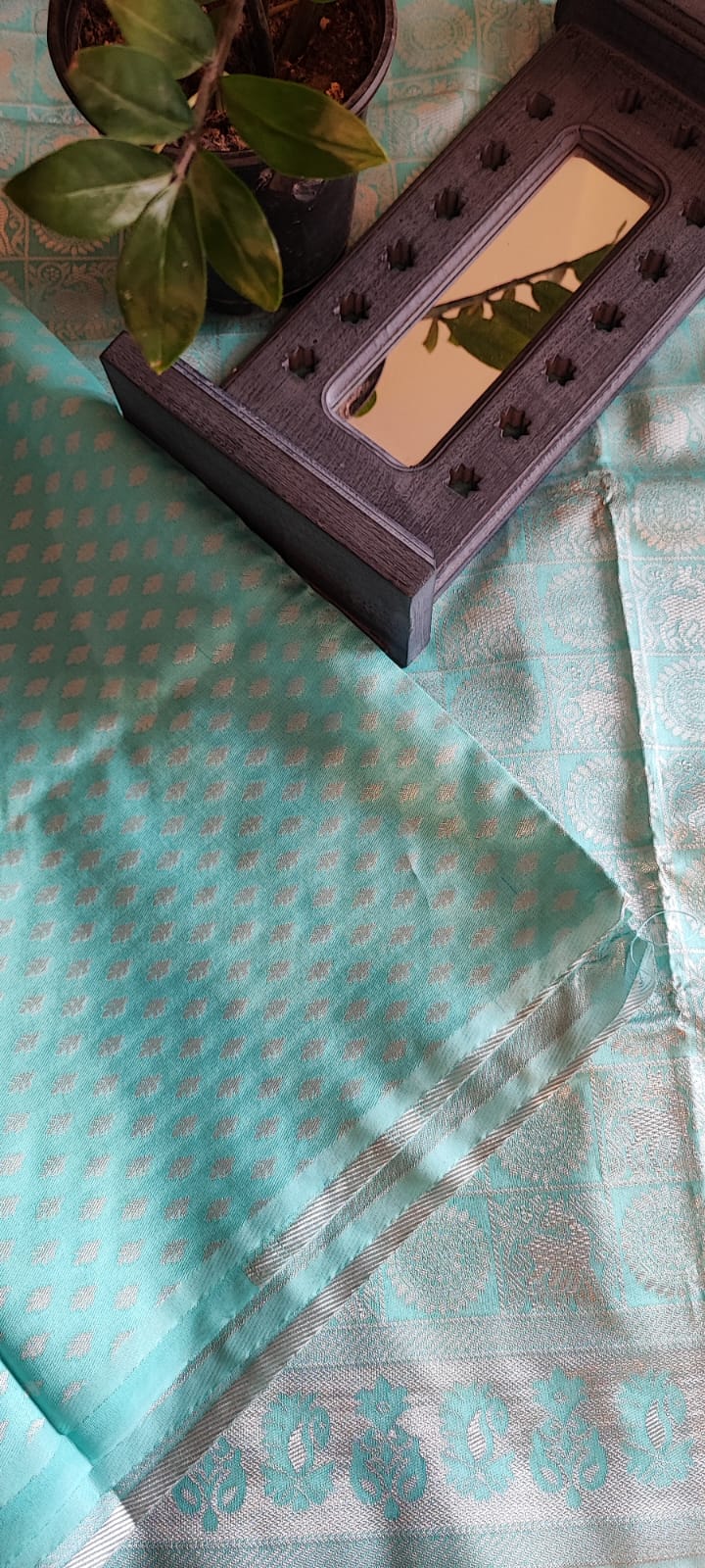 A Sky Blue Semi Silk Banarasee Saree with Blouse Piece
