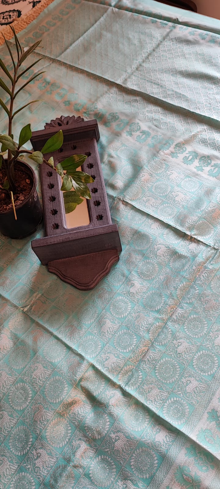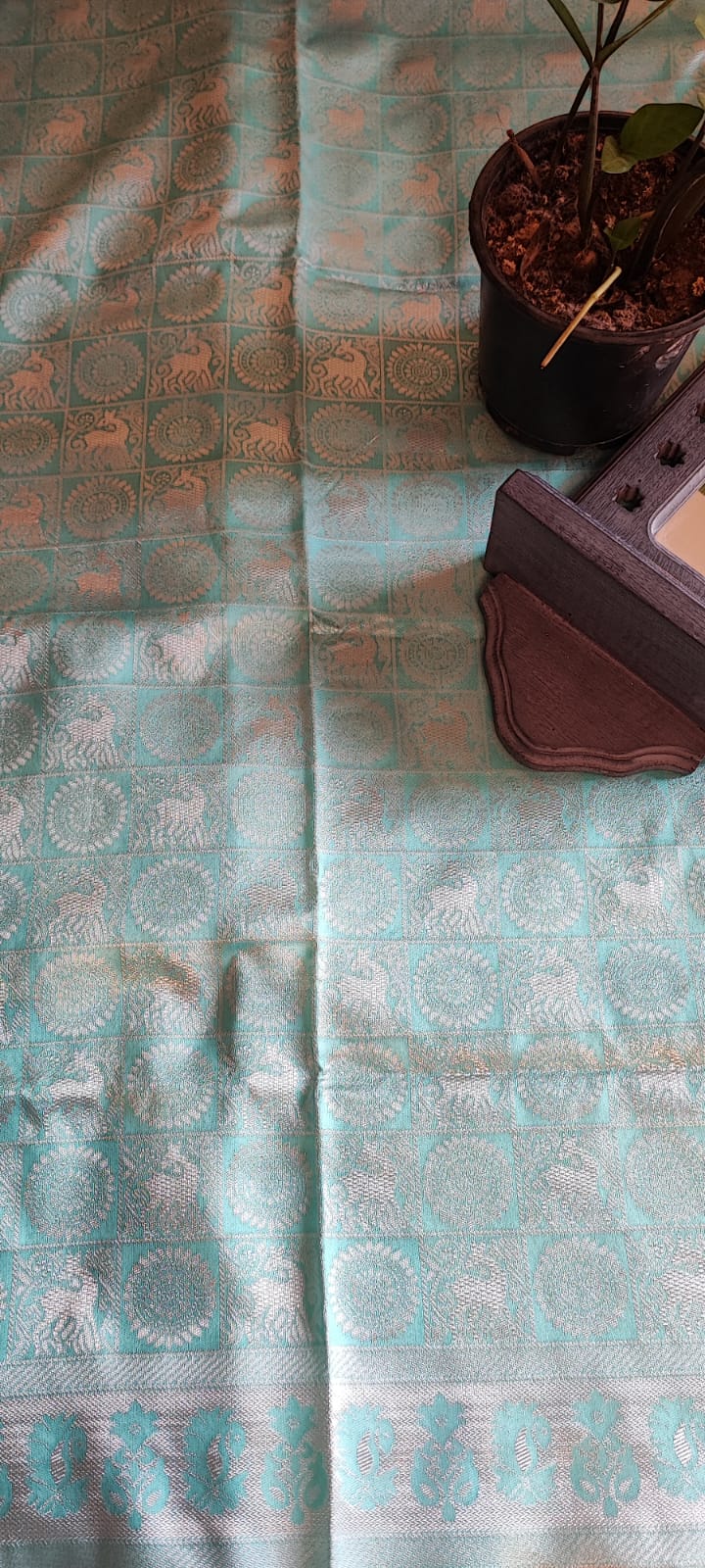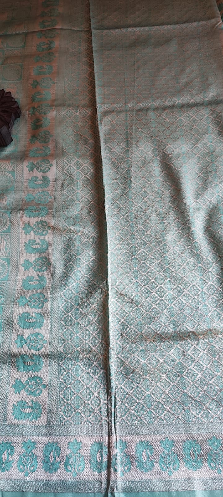 A Sky Blue Semi Silk Banarasee Saree with Blouse Piece