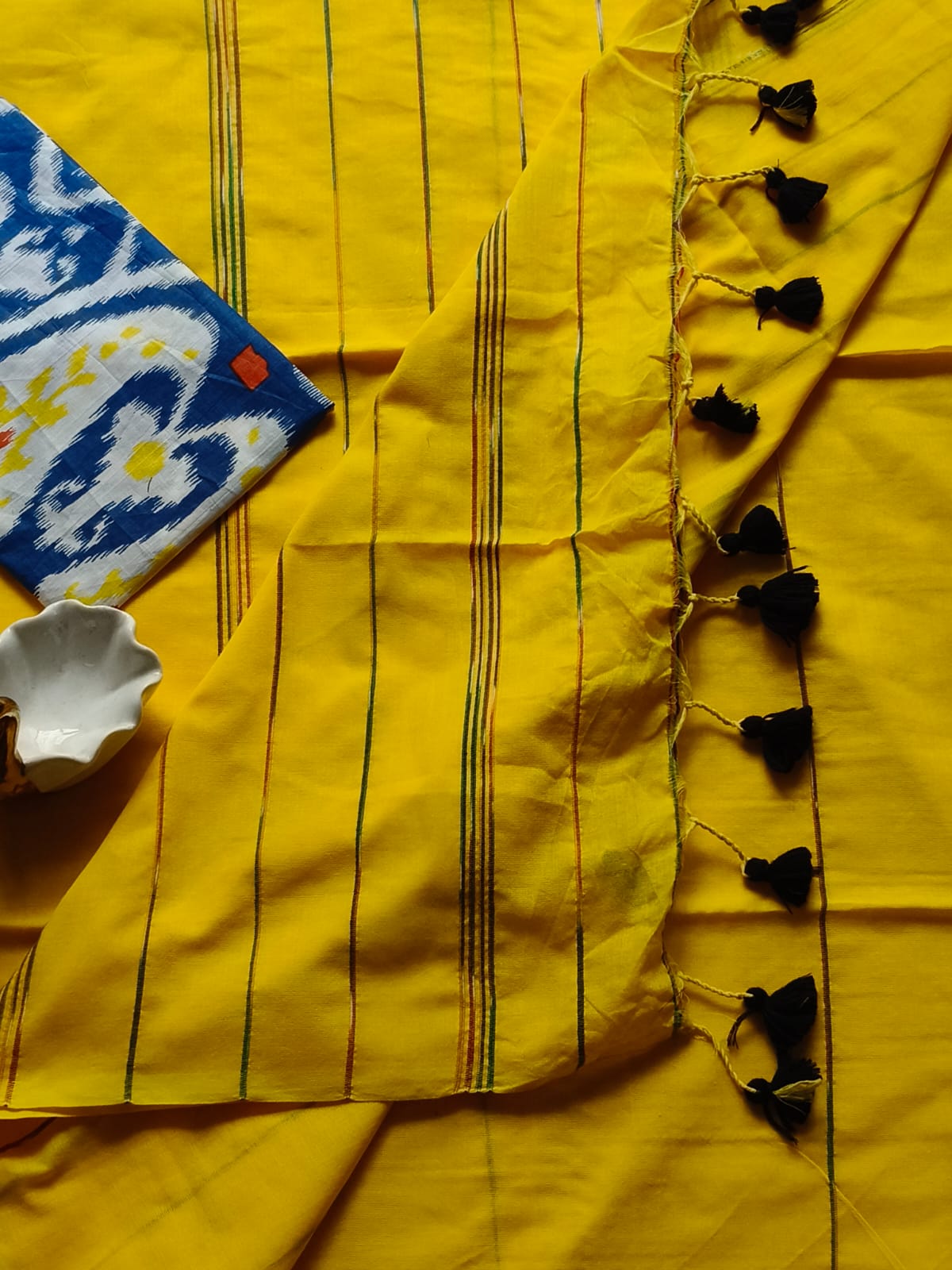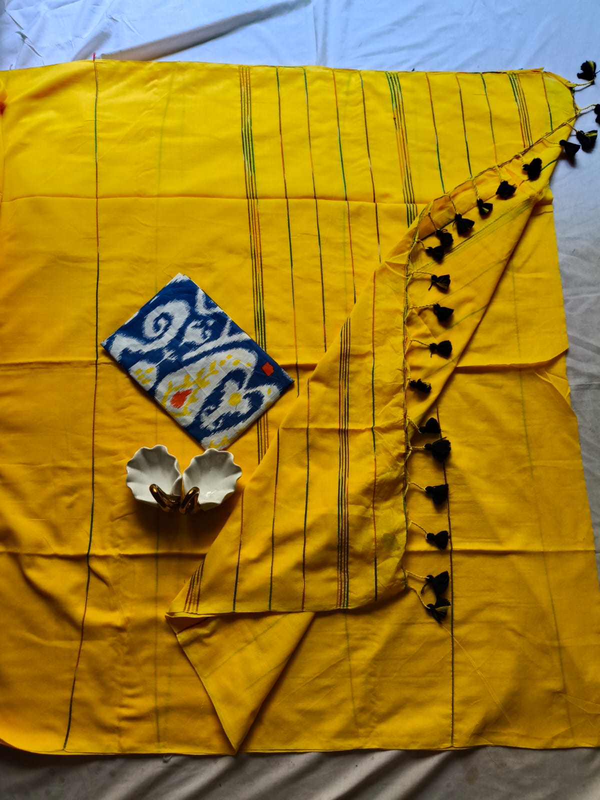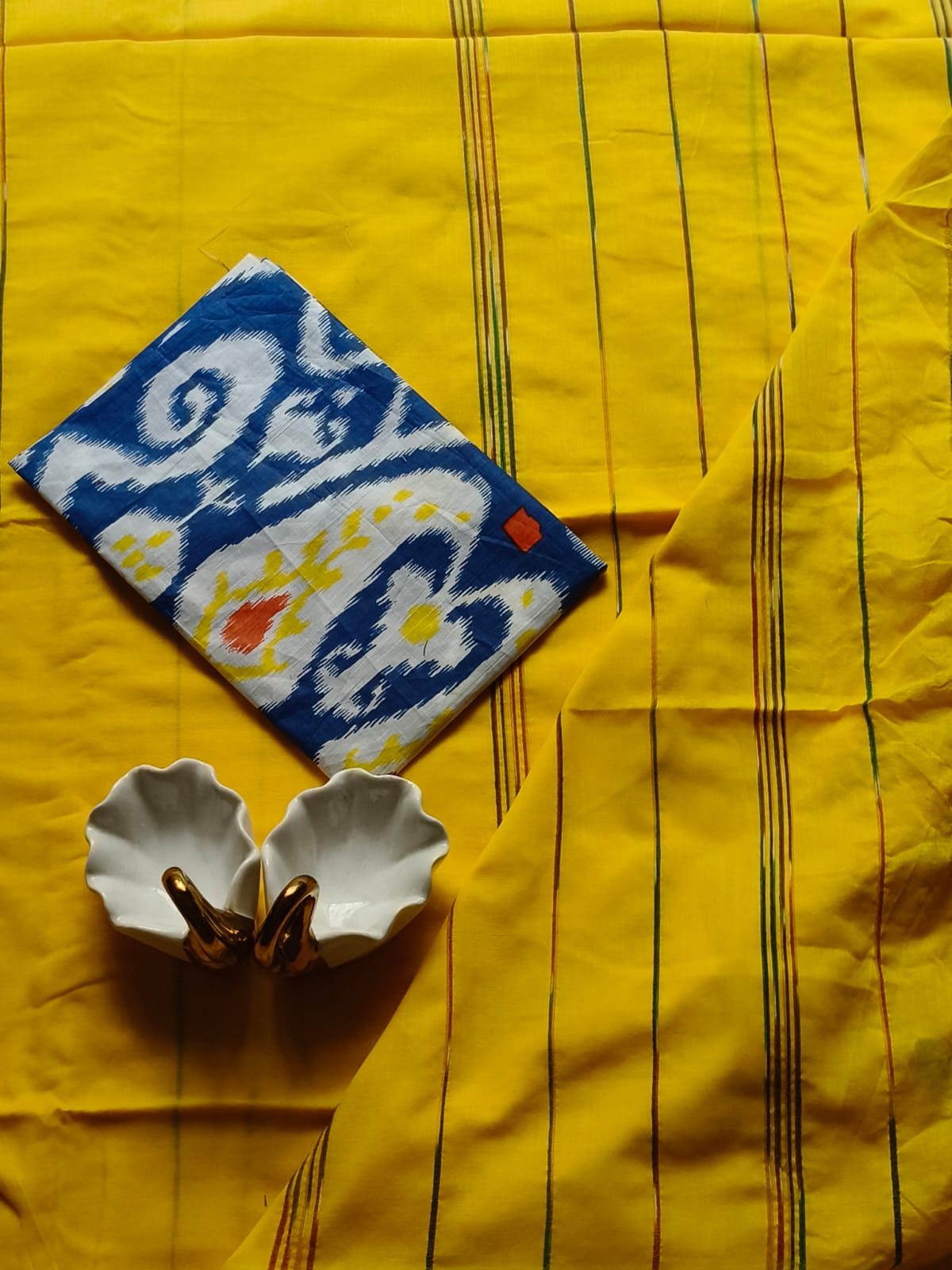 A Sunshine Yellow Khesh Handloom Cotton Saree paired with Blouse Fabric