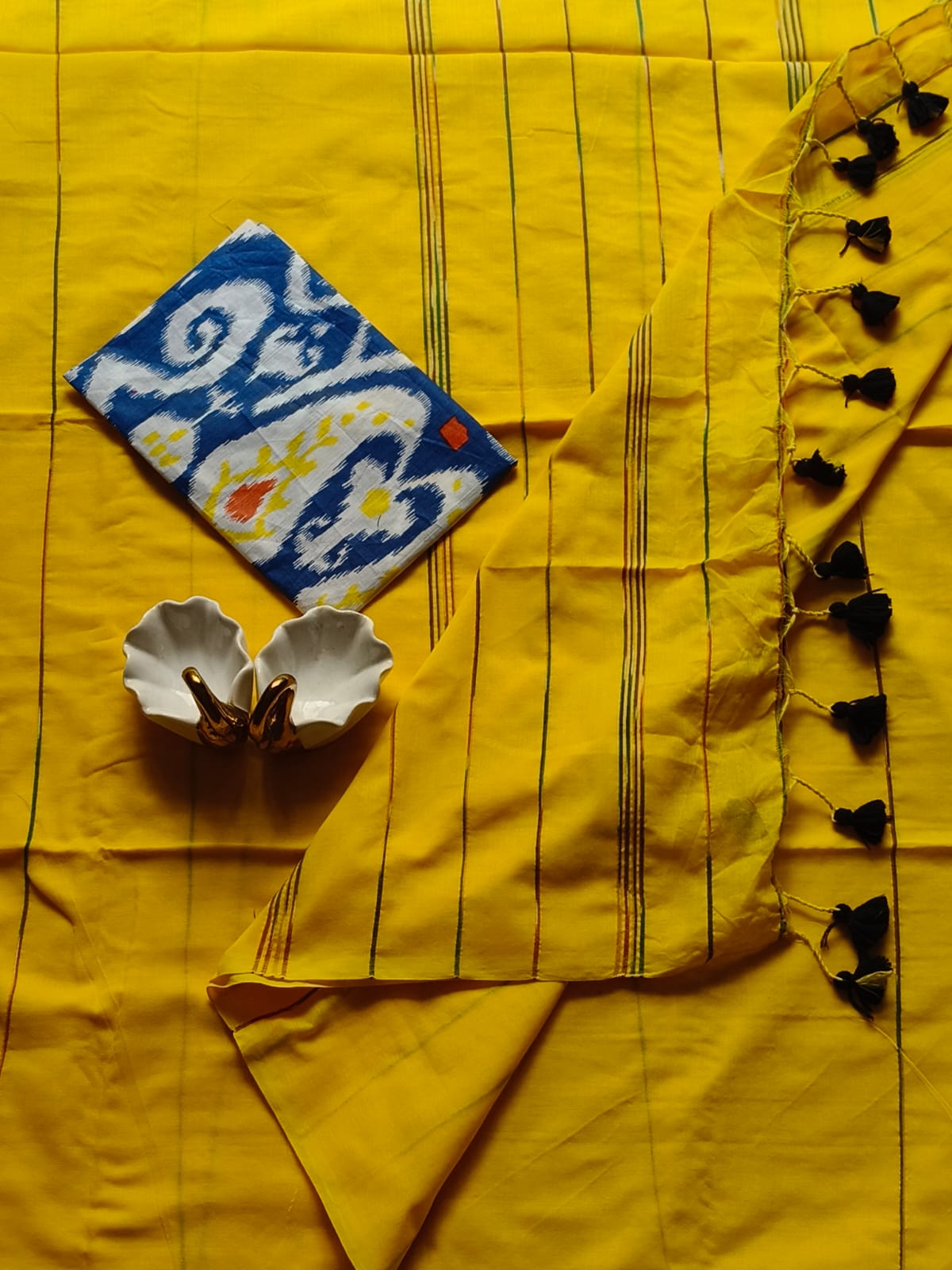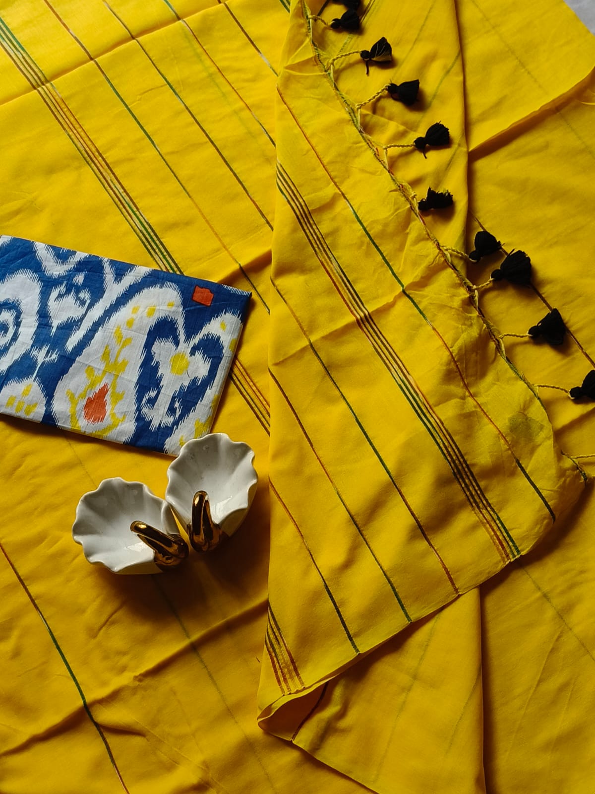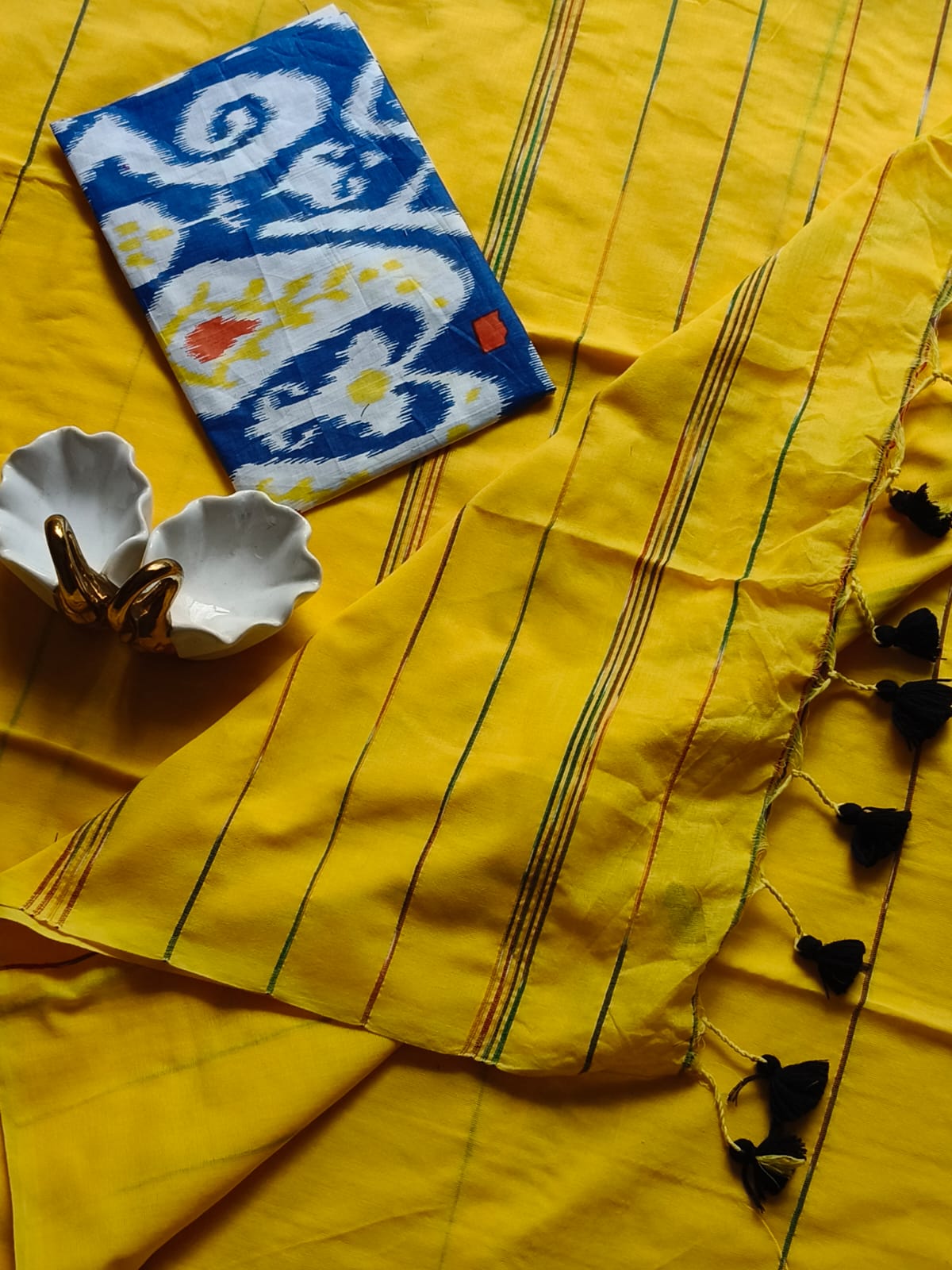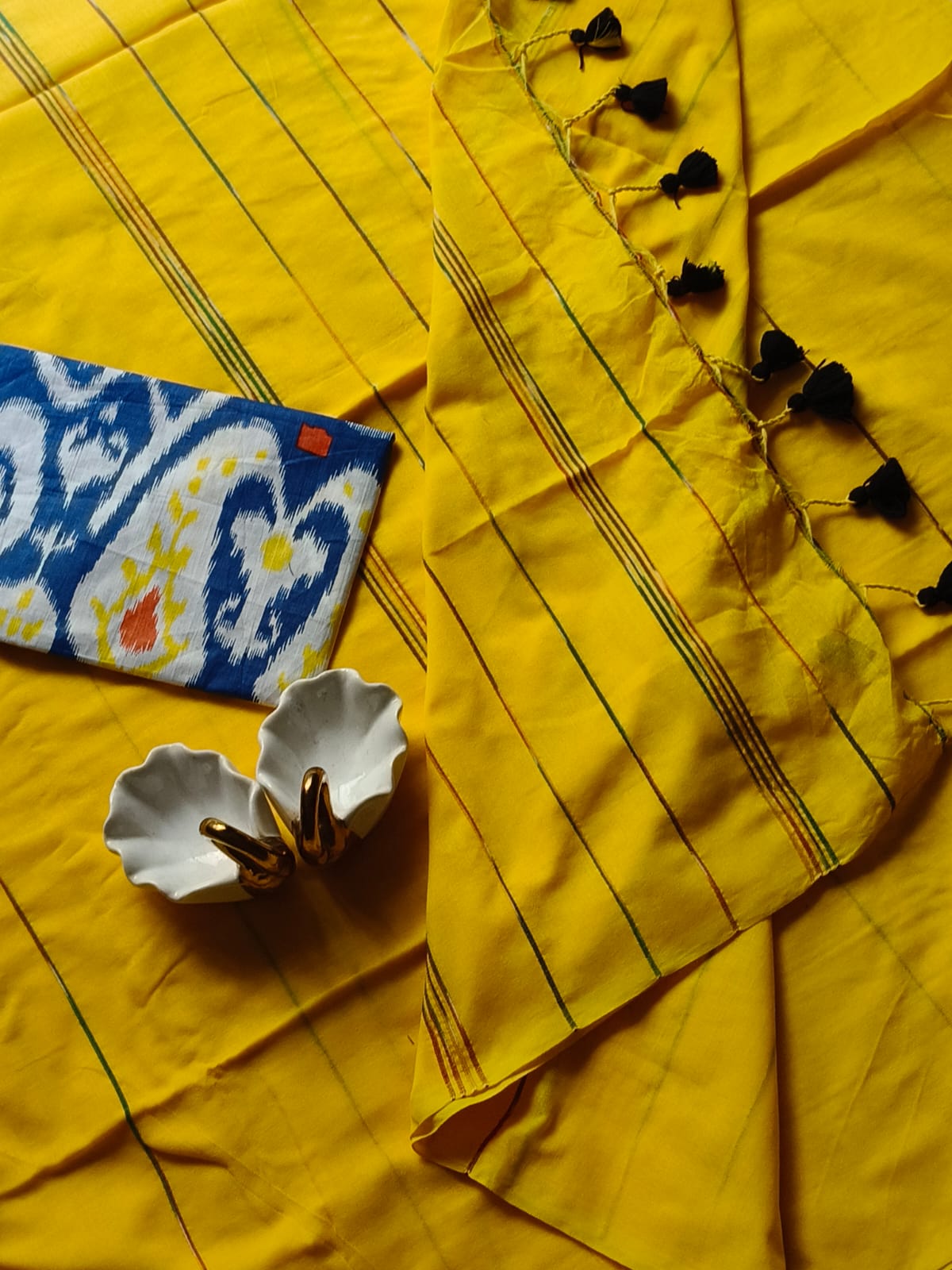 A Sunshine Yellow Khesh Handloom Cotton Saree paired with Blouse Fabric