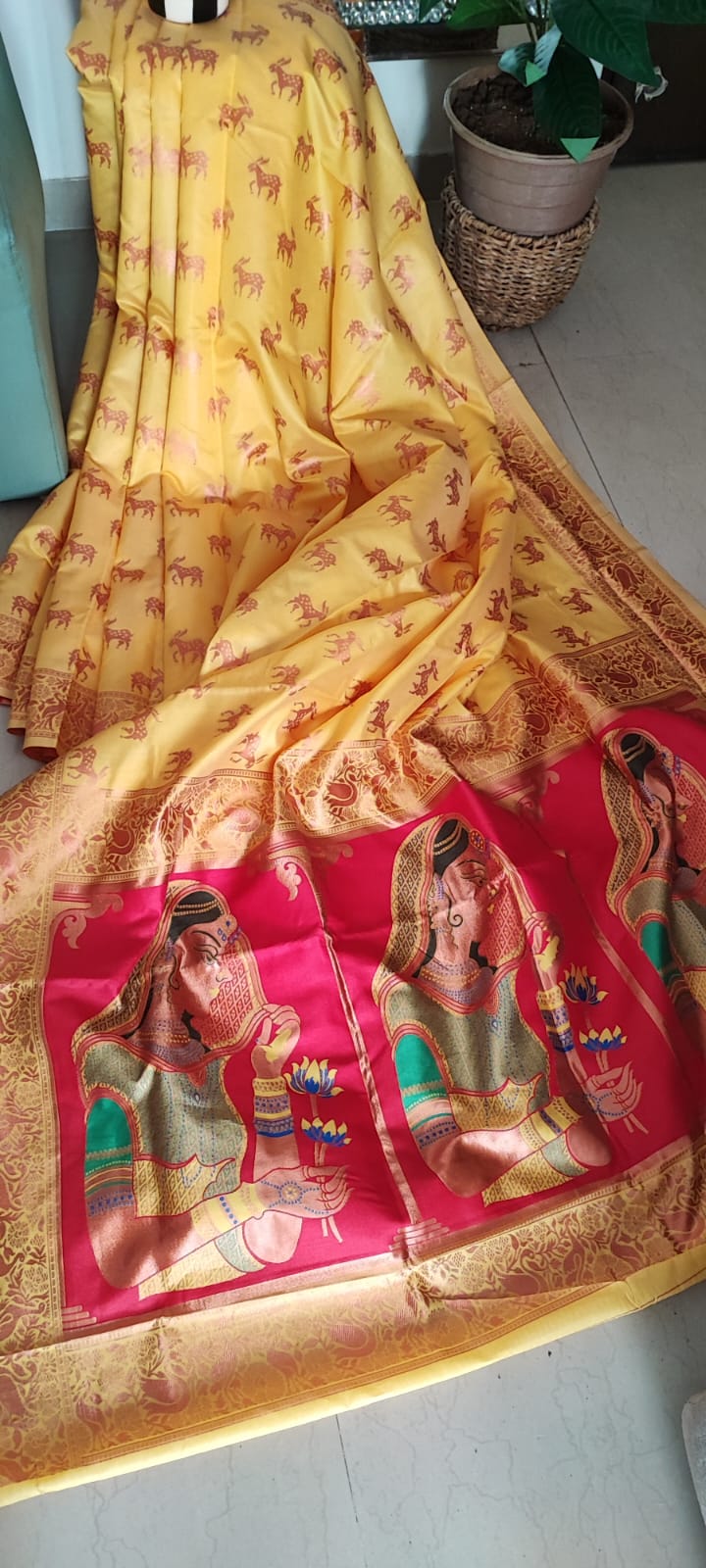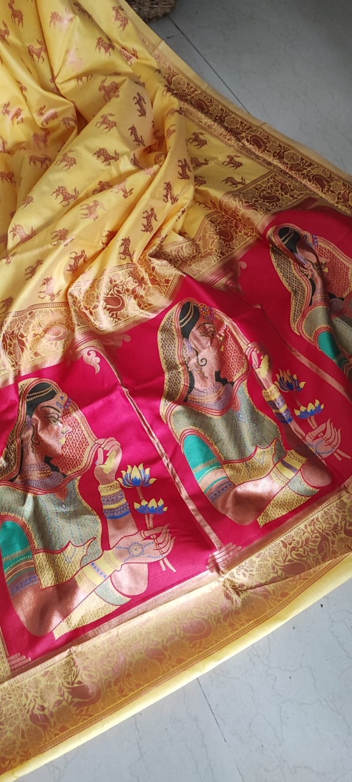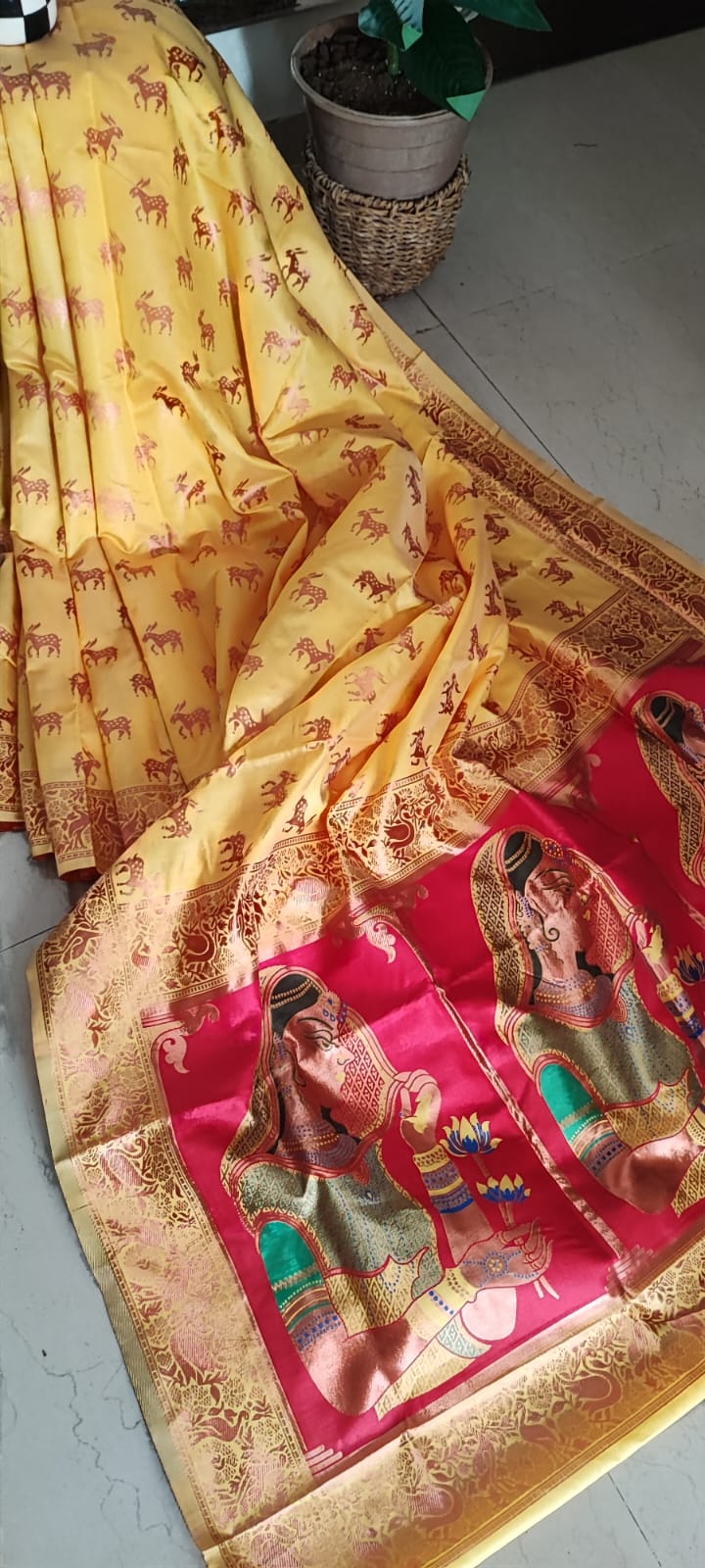 Yellow & Pink Patola Saree with Blouse Piece