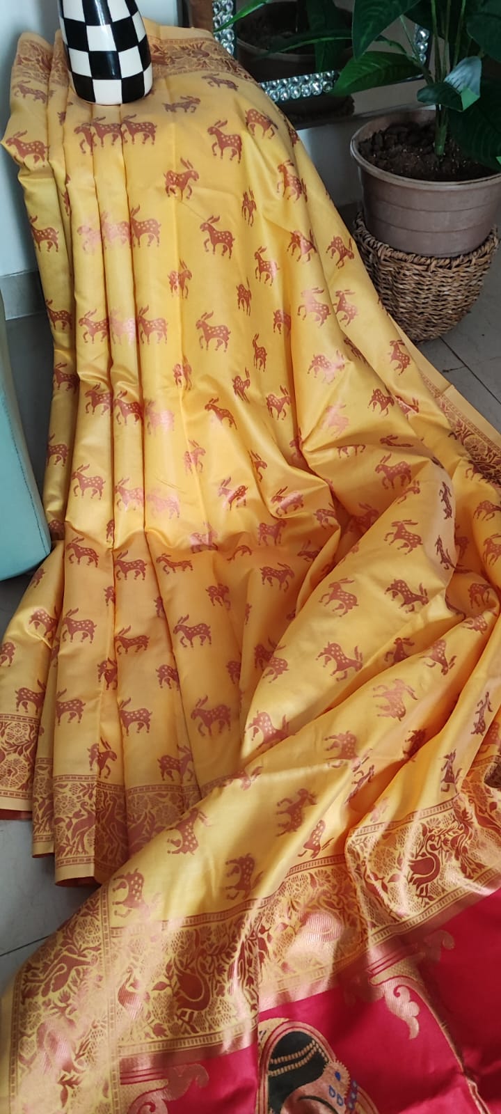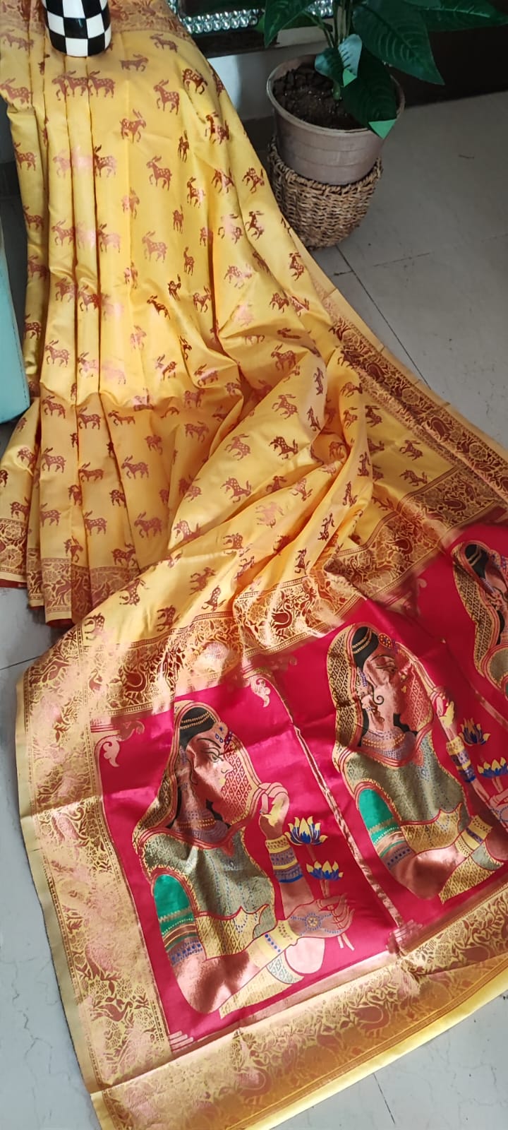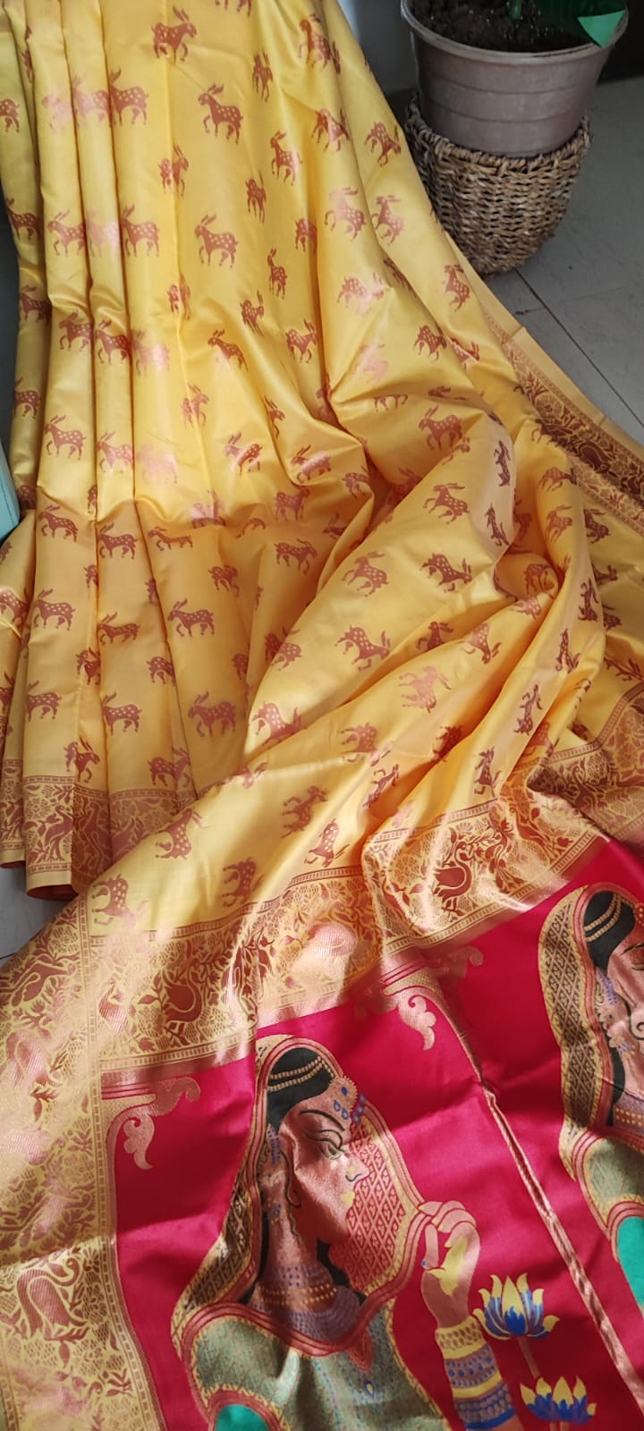 Yellow & Pink Patola Saree with Blouse Piece