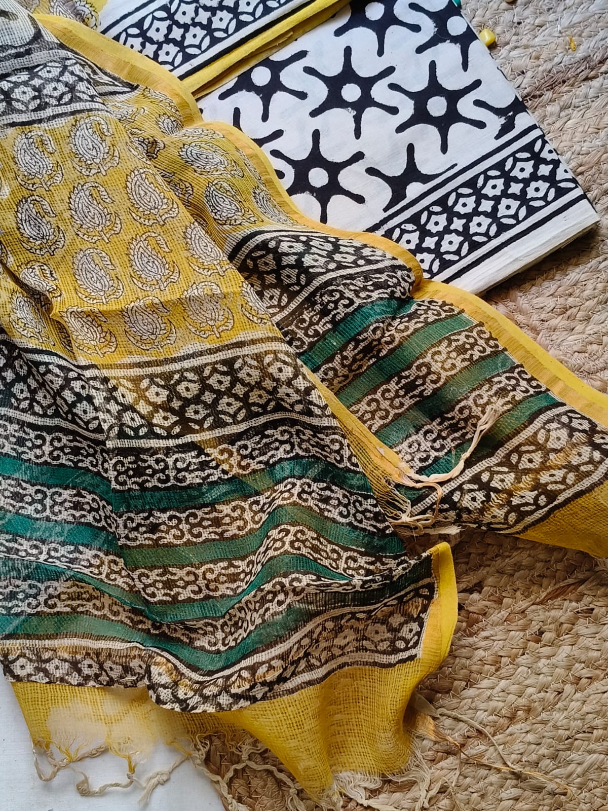 Yellow  Sangeneri Cotton Suit Set With Kota Dupatta